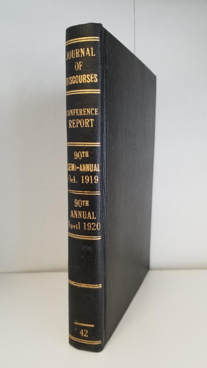 Book includes two conference reports, October of 1919 and April of 1920. The original wrappers are included in the binding, and both issues are in great condition!