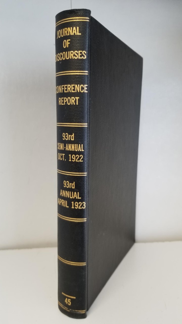 Book includes two conference reports, October of 1922 and April of 1923. The original wrappers are included in the binding.