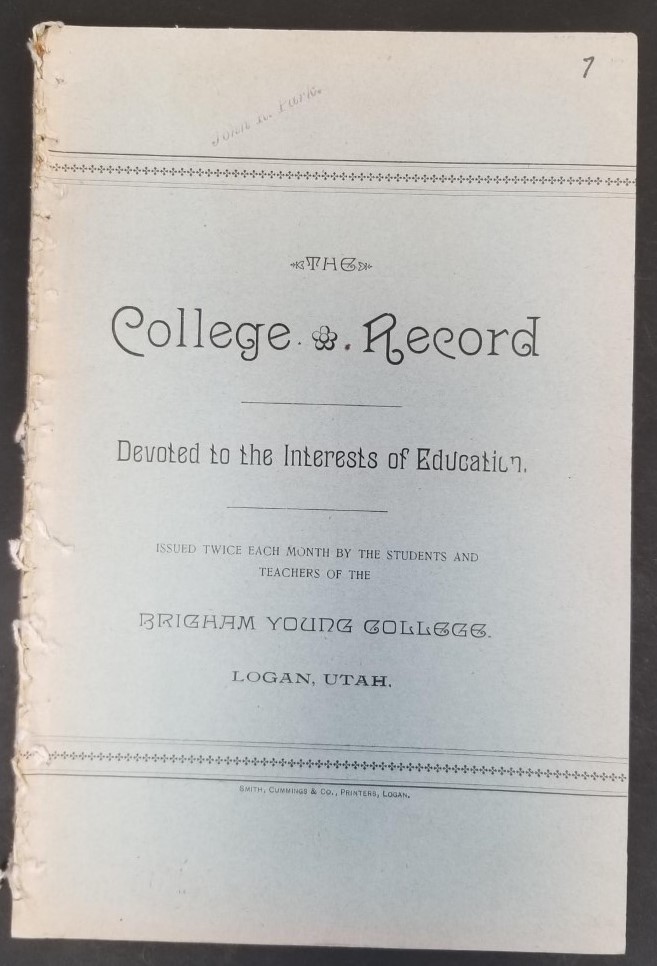 The College Record Devoted to the Interests of Education, Issued Twice Each Month by the Students and Teachers of the Brigham Young College, Logan, Utah, 1893 Vol.1, Nos 4, 7, 9, 10, 11, 12.