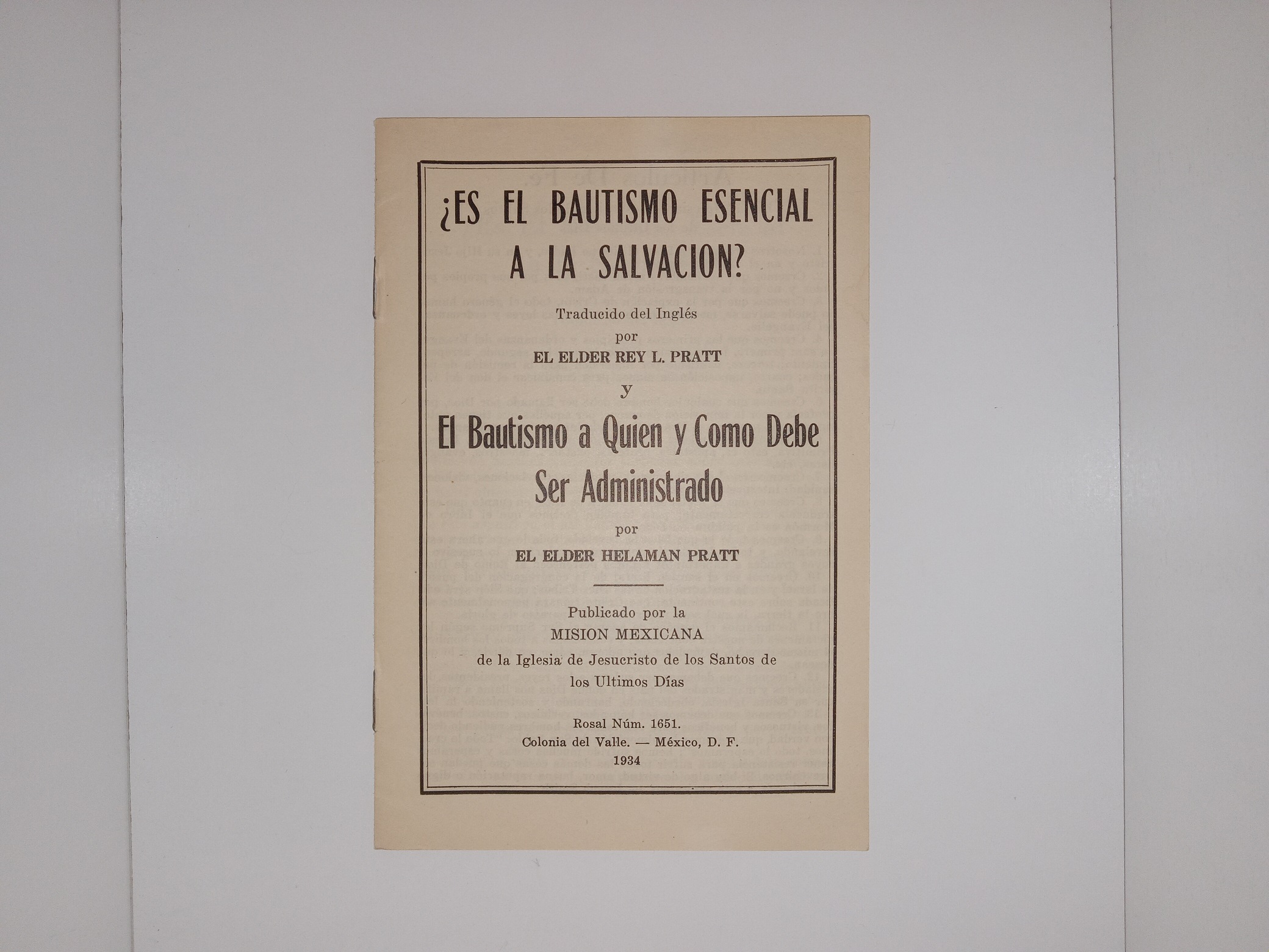 (Spanish: Is Baptism Essential to Salvation?: Translated from English by Elder Rey L. Pratt and Baptism to Whom and How It Should Be Administered by Elder Helaman Pratt)