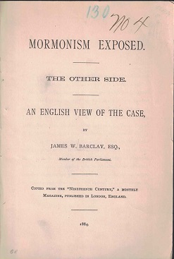 Barclay, James W. Mormonism Exposed. The Other Side. An English View of the Case. Copied from the “Nineteenth Century”, a Monthly Magazine, published in London, England. 1884. 30 pages.