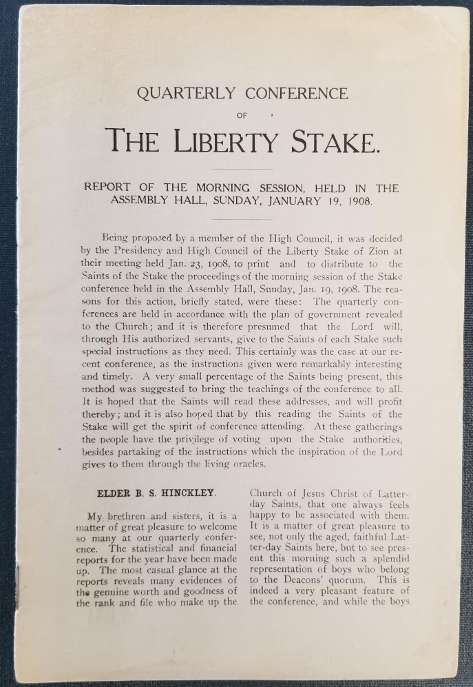 Quarterly Conference of The Liberty Stake. Report of the Morning Session, Held in the Assembly Hall, Sunday, January 19, 1908