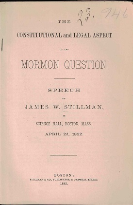 The Constitutional & Legal Aspect of the Mormon Question. Speech of James W. Stillman, in Science Hall, Boston, Mass., April 2d, 1882