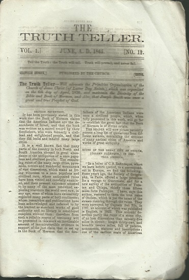 Truth Teller Vol. 1. No. 12, June, 1865 Granville Hedrick [Hedrickites] Single Issue
