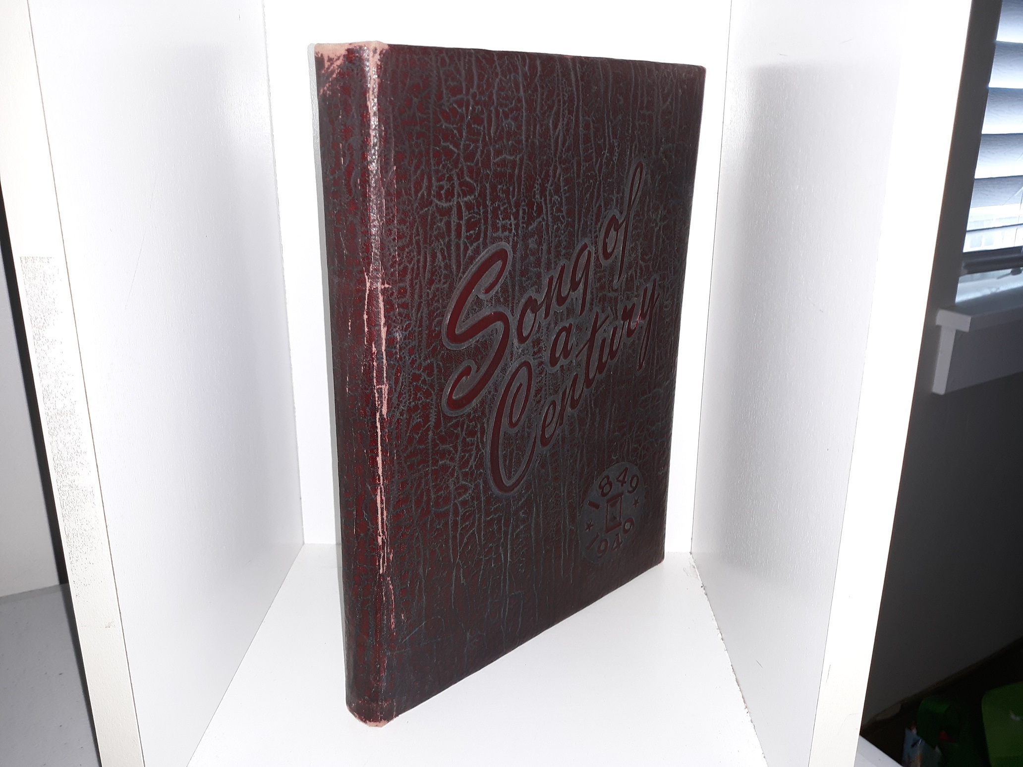 Fair condition, large, burgundy hardcover with no dust jacket. The cover has fading, scuffing, and wear at the corners and edges. The internal binding is slightly loose. The front flyleaf has a patch of tearing where something was removed. The title page has writing in pencil and eraser marks. Text and illustrations throughout are clean, clear, and legible.
