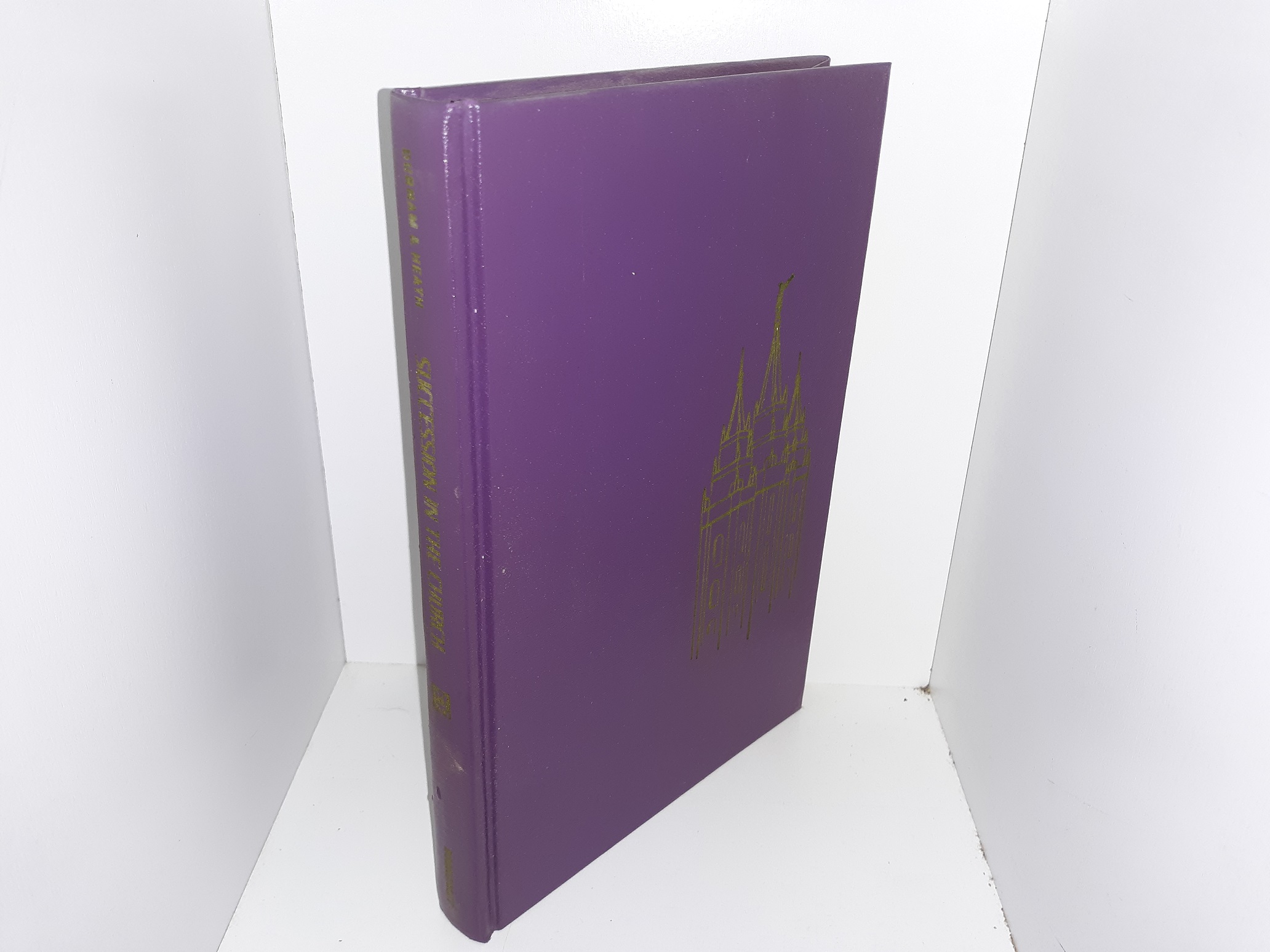 Good condition, purple hardcover with no dust jacket. The cover has scuff marks and scratches. The inside covers and flyleaves have yellowing at the edges. The front flyleaf has writing in pencil. Text throughout is clean, clear, and legible.