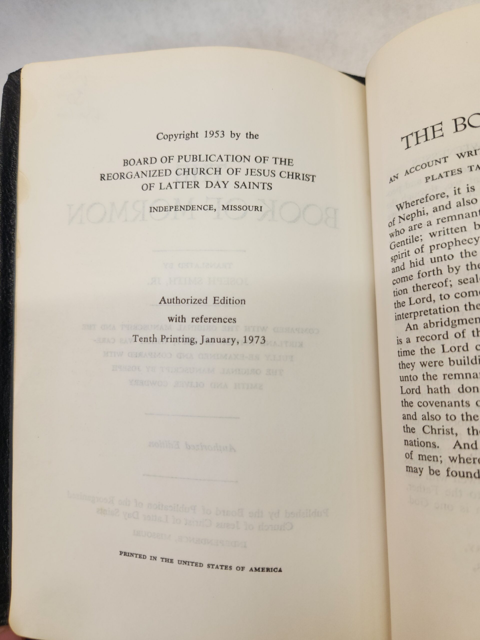 Book of Mormon (1973, RLDS, Black Faux Leather)