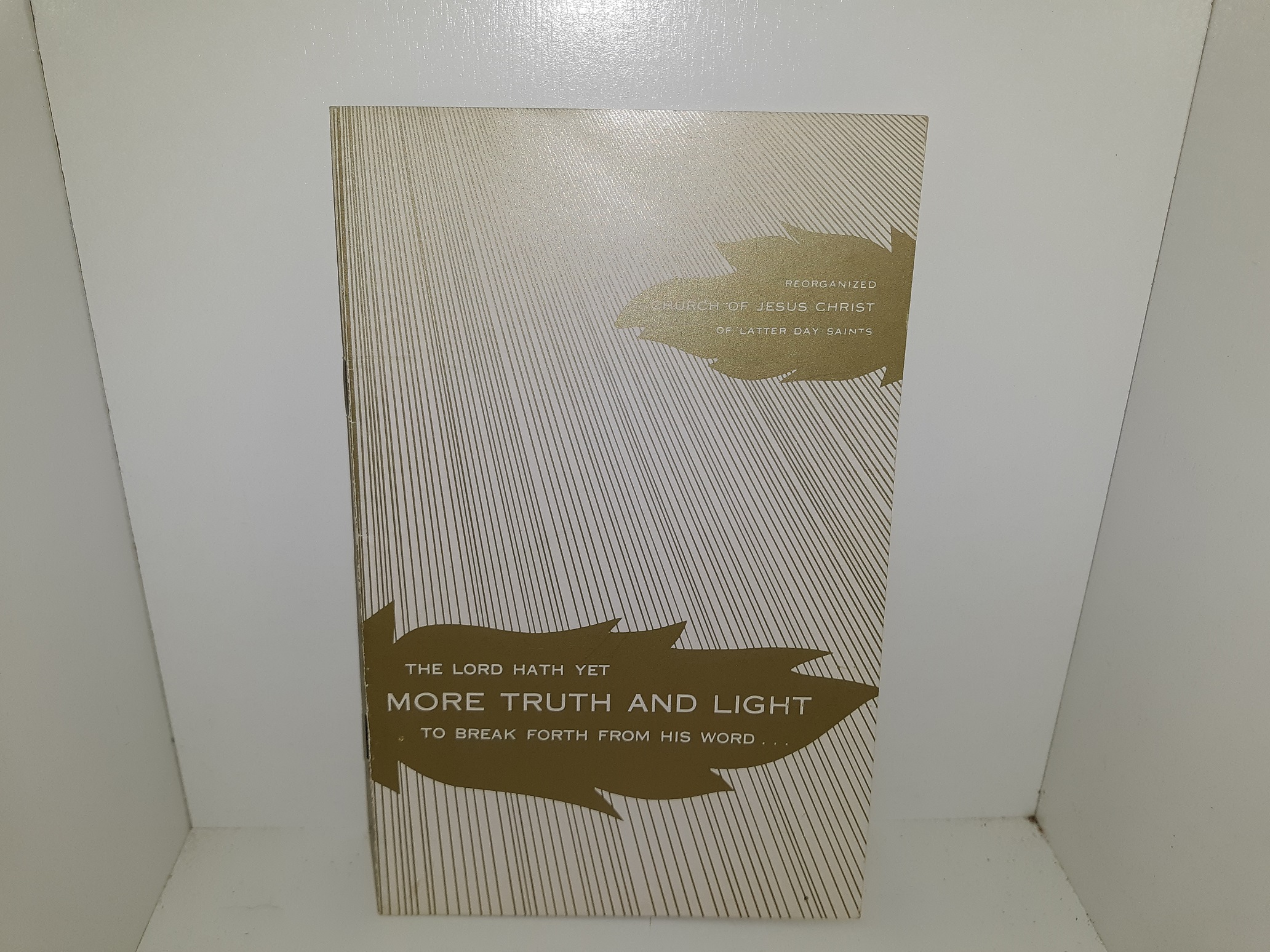 Good condition, small, thin, staple-bound, white and gold pamphlet. The cover has some scuff marks and some creasing. The inside covers have some scuff marks. The title page has writing in pencil. Text throughout is clean, clear, and legible………………v1 Bx1474E