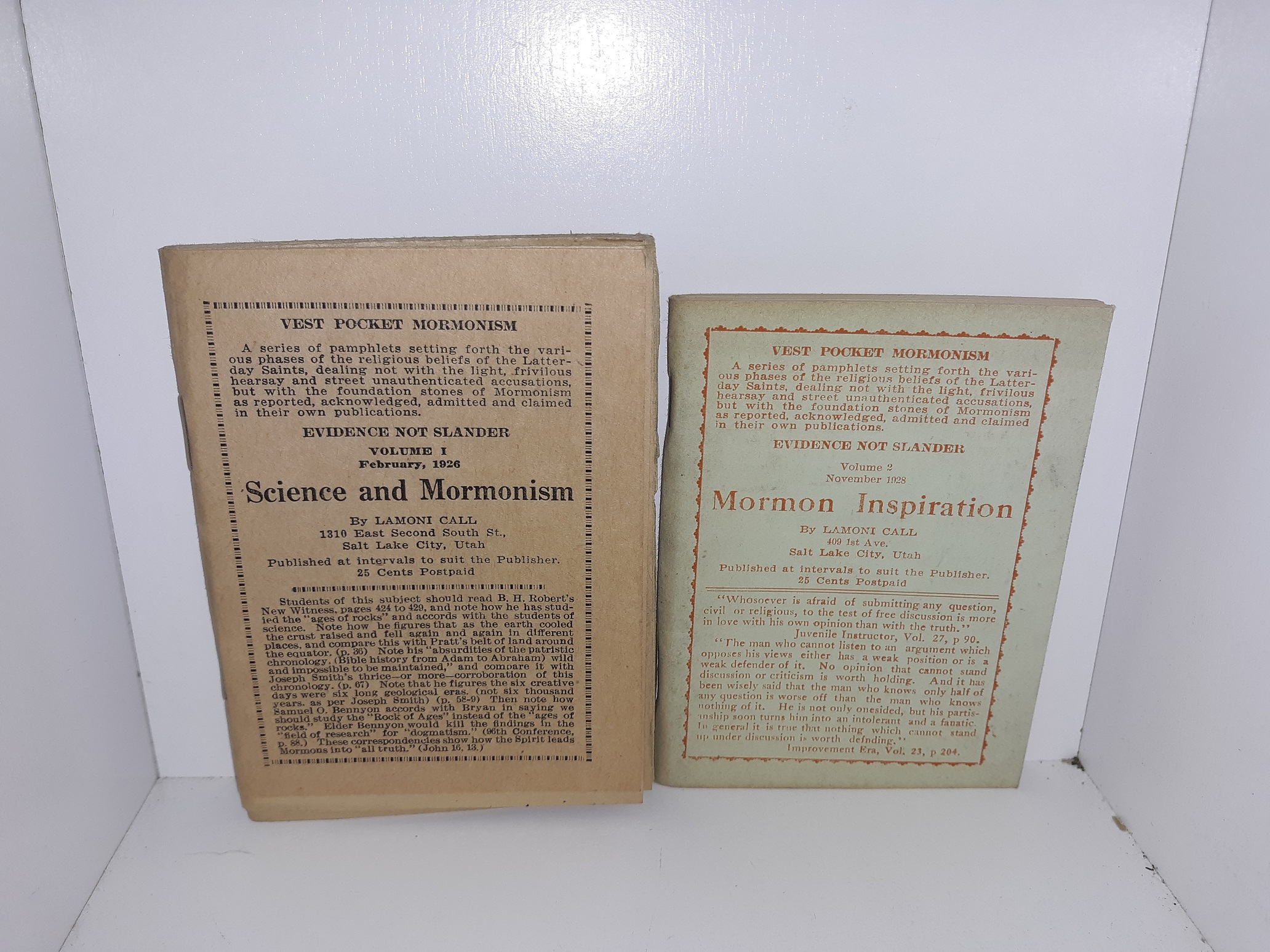 - Vol. 1: Science and Mormonism (1926)
