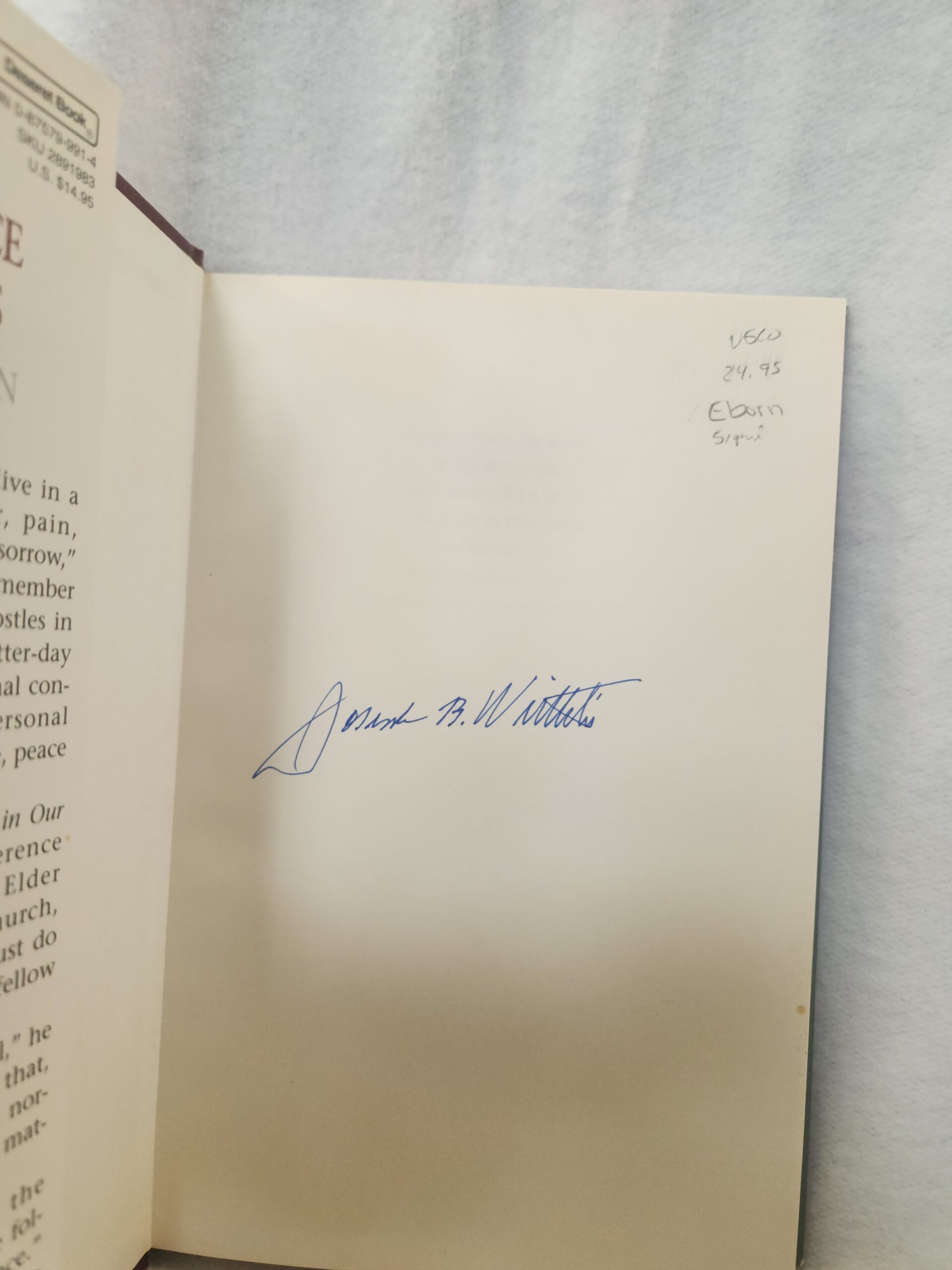Finding Peace in Our Lives (1995, Hardcover w/ dust jacket, signed by author) No writing/marks on pages besides the author signature on inside of front cover (see pic). Binding is good. Corner and edges, on both book and dust jacket, show some shelf wear with slight dents/rub marks. Cover, front and back, has light scratch marks.