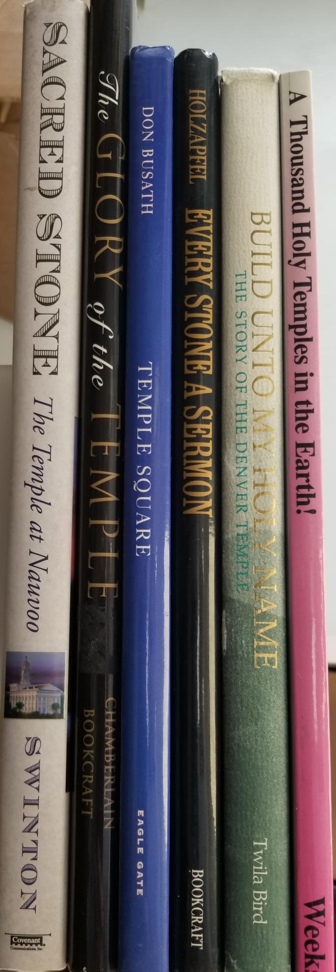 Six books on LDS temples; all are hardbound except one is softcover: