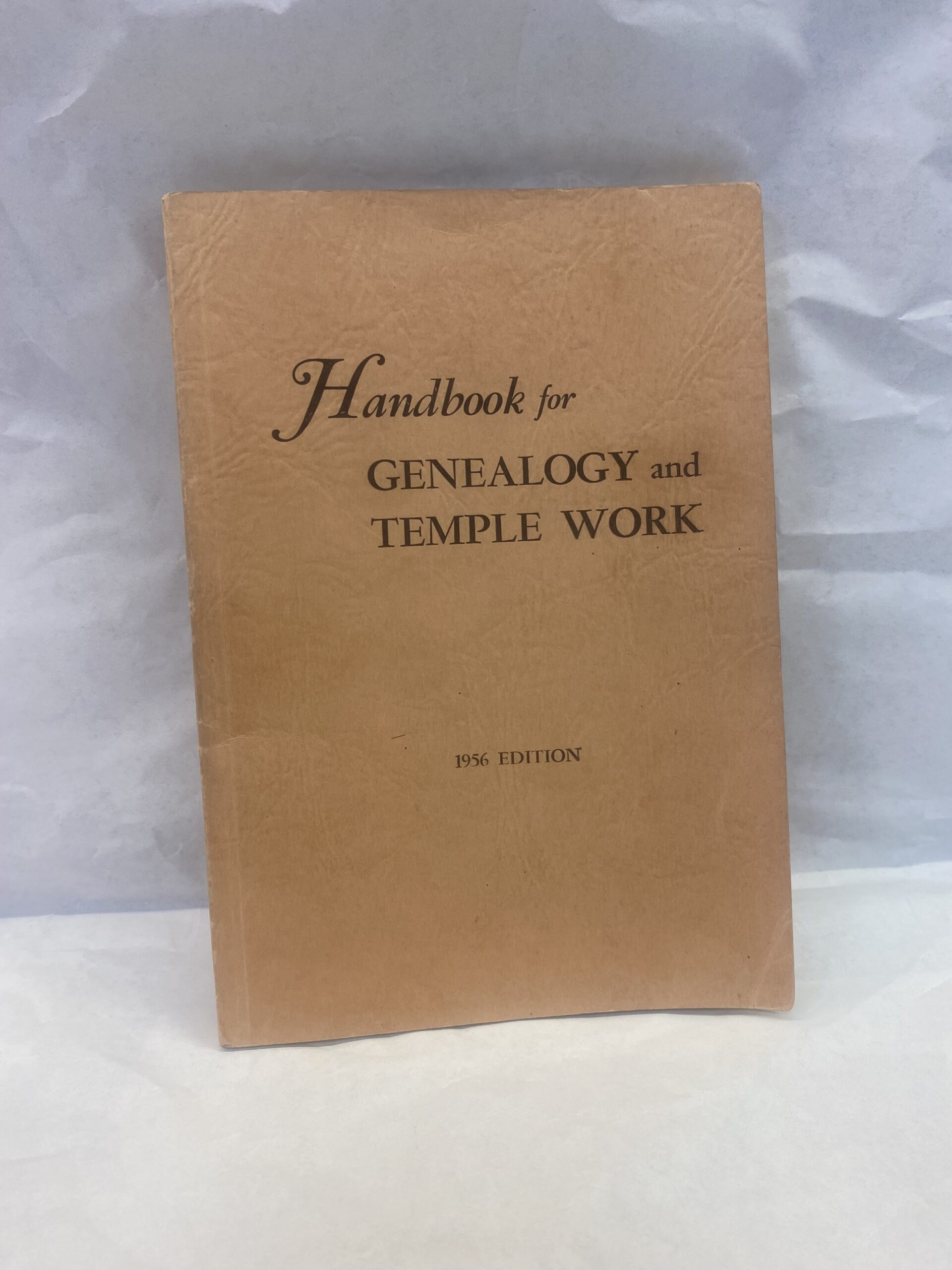 1956 Edition of the Handbook for Genealogy and Temple Work from the Genealogy Society of the Church of Jesus Christ of Latter-Day Saints. Paperback, 1956.