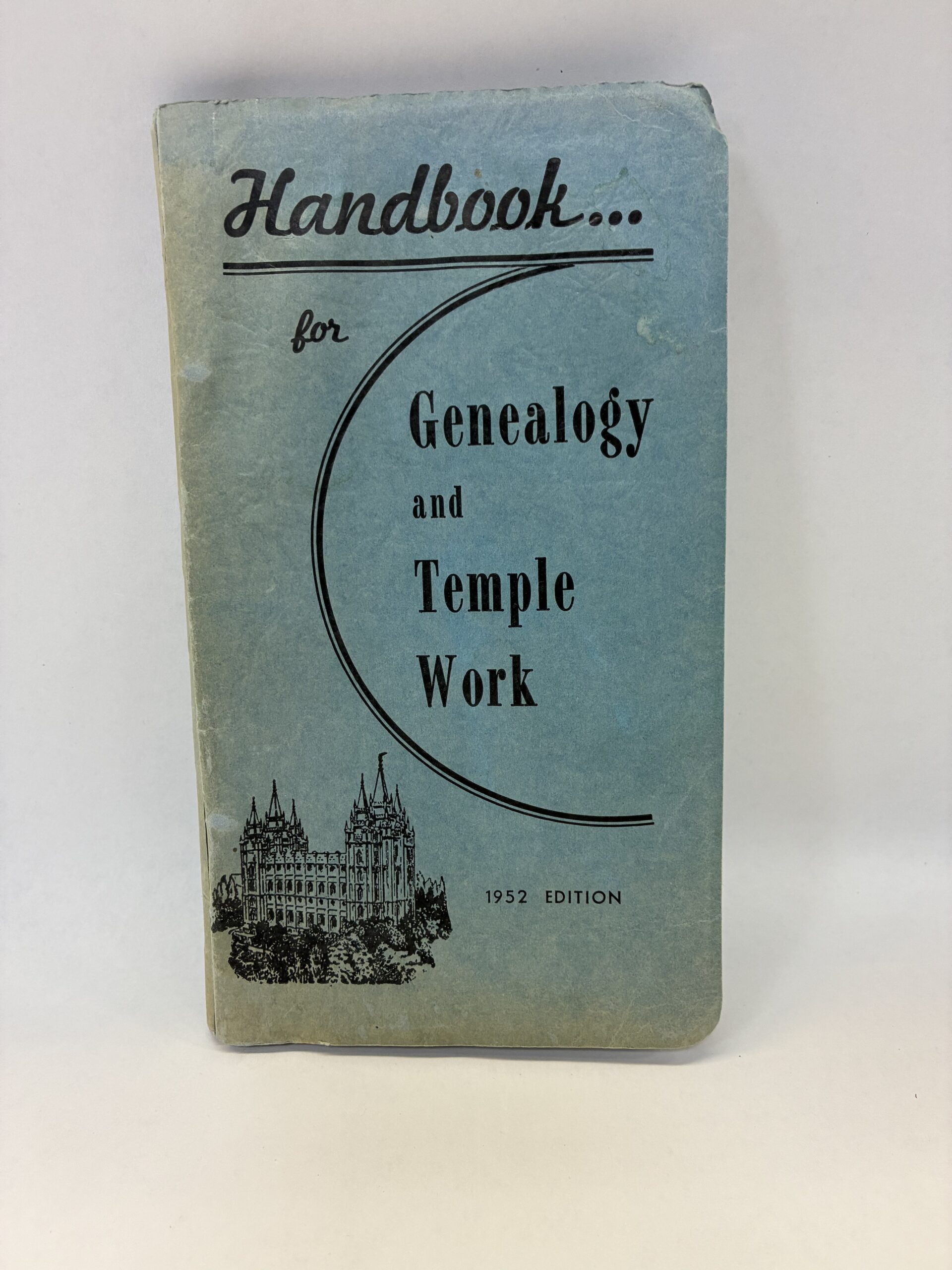Handbook for Genealogy and Temple Work prepared by the Genealogy Society of the Church of Jesus Christ of Latter-day Saints. Staple Bound, 1952 Edition.
