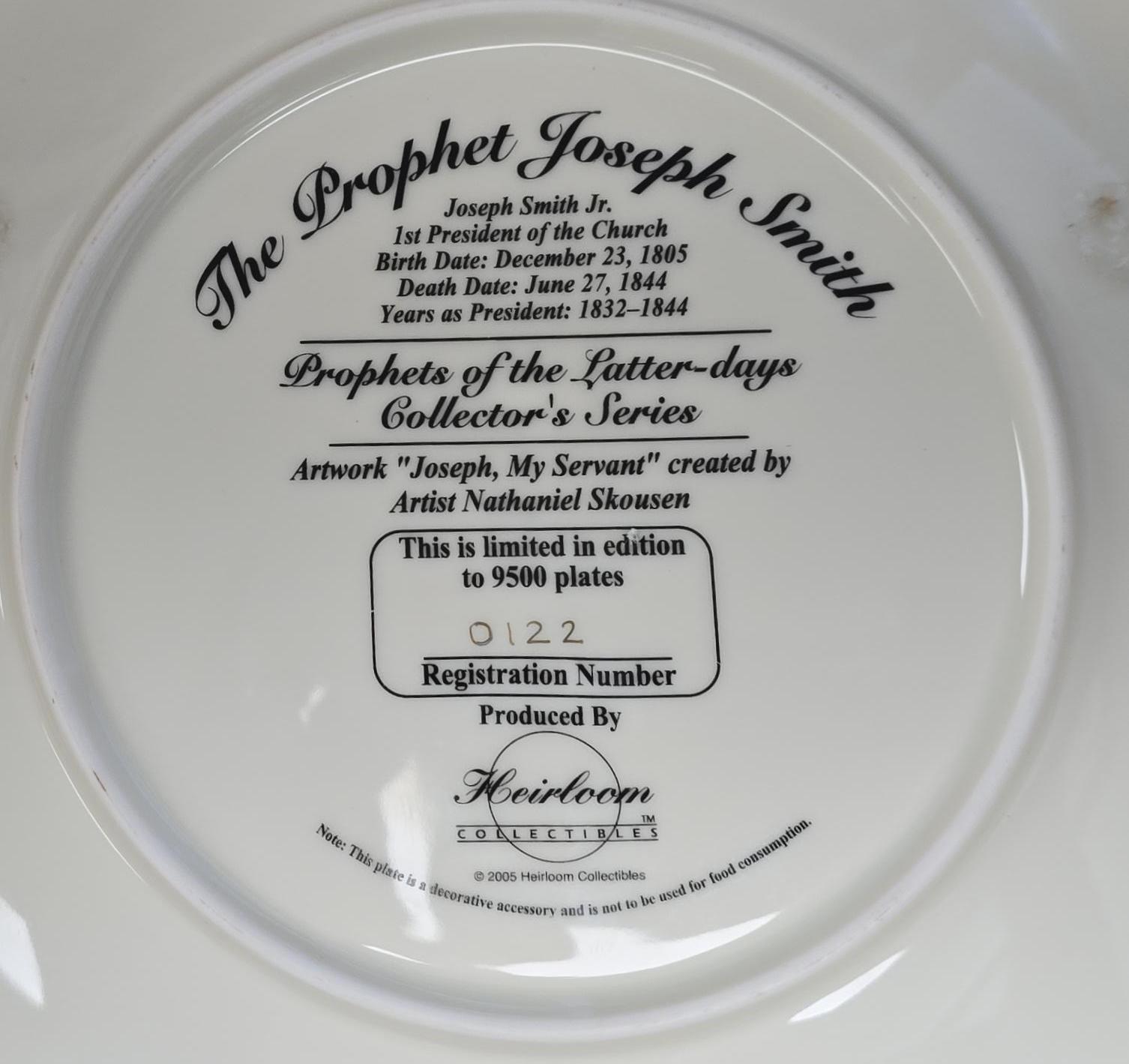 #122 of a Limited Edition Collector Plate --- The Prophet Joseph Smith quantity