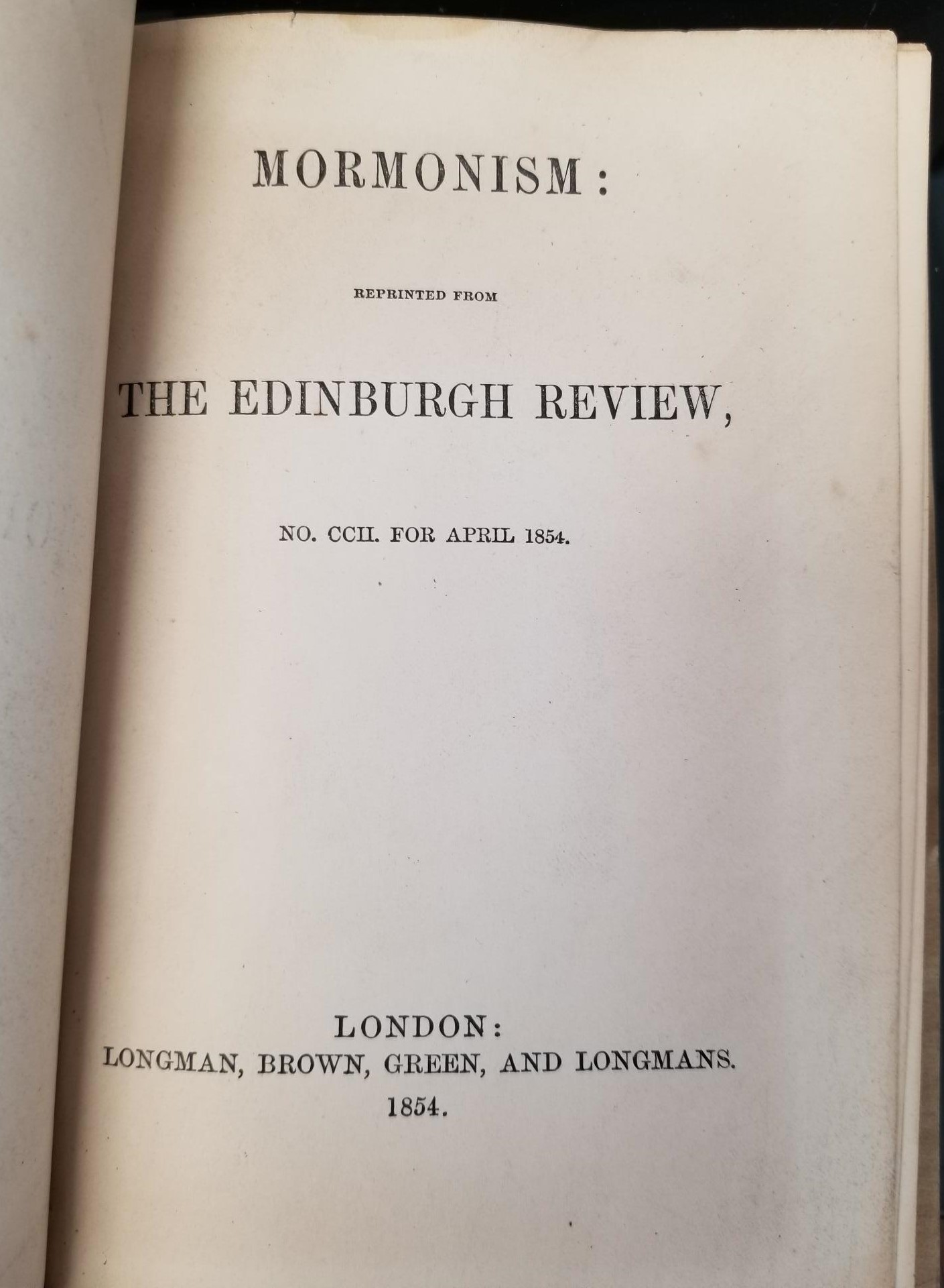 1854 — Mormonism: Reprinted from The Edinburgh Review, No. CCIL for April 1854 — Softcover