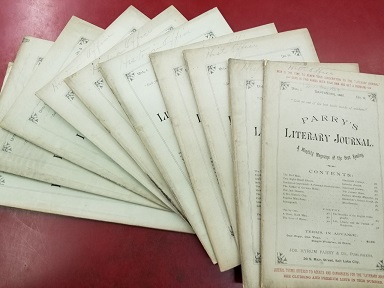 Parry’s Literary Journal. A Monthly of the Best Reading. Jos. Hyrum Parry & Co., Publishers. Salt Lake City, Utah. Most of these ten issues, for 1885, have written at the top that they went to the “Historian’s Office” at the Mormon Church in Salt Lake City.