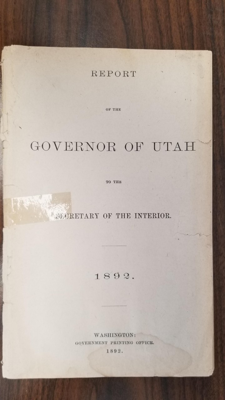 1892 — Report of the Governor of Utah to the Secretary of the Interior — Government Printing Office