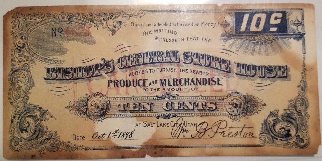 1898 — Bishop’s General Storehouse — 10 Cents — Produce & Merchandise