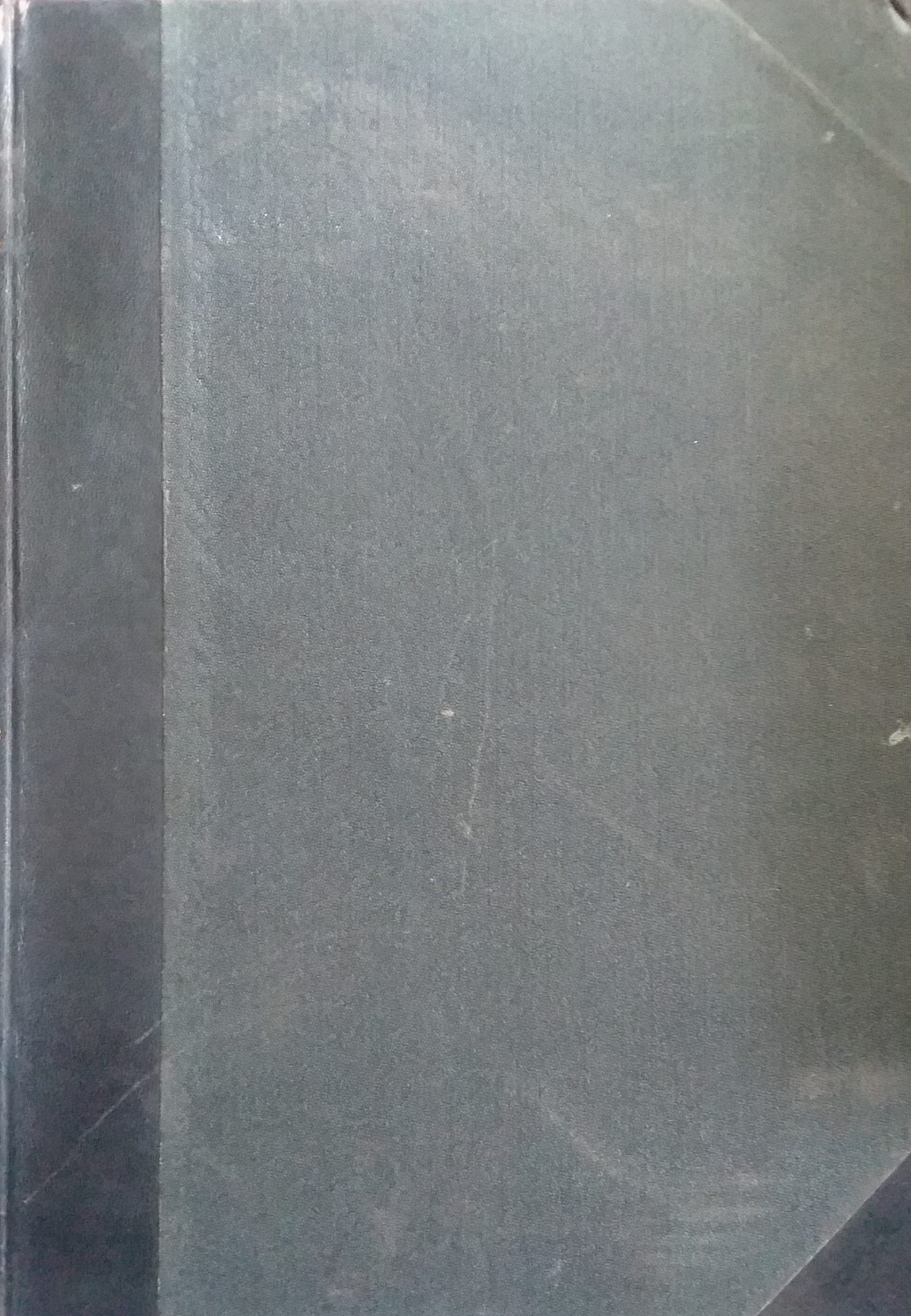 Tall thick black hardcover with gold lettering on the spine. Some large scuffs and smudges on both covers. Fraying on the spine. Smudges on the inside front and back cover. Pencil markings on the flyleaf, but otherwise the text throughout is clean, clear, and legible.