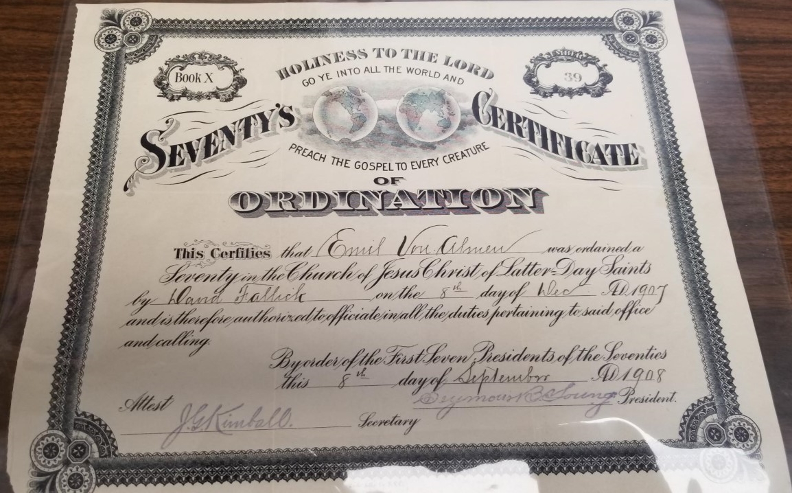 mormon mormons mormonism lds certificates signature signatures signed autograph autographs autographed document documents certificate