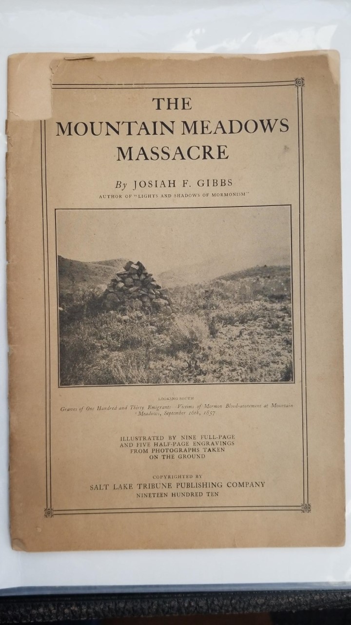 / 1910 — The Mountain Meadows Massacre — Josiah F. Gibbs — Salt Lake Tribune Publishing Company — Softbound Booklet — 59 Pages
