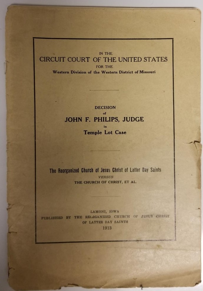 1913 — Decision of John F. Philips, Judge, in Temple Lot Case — Reorganized Church vs Church of Christ
