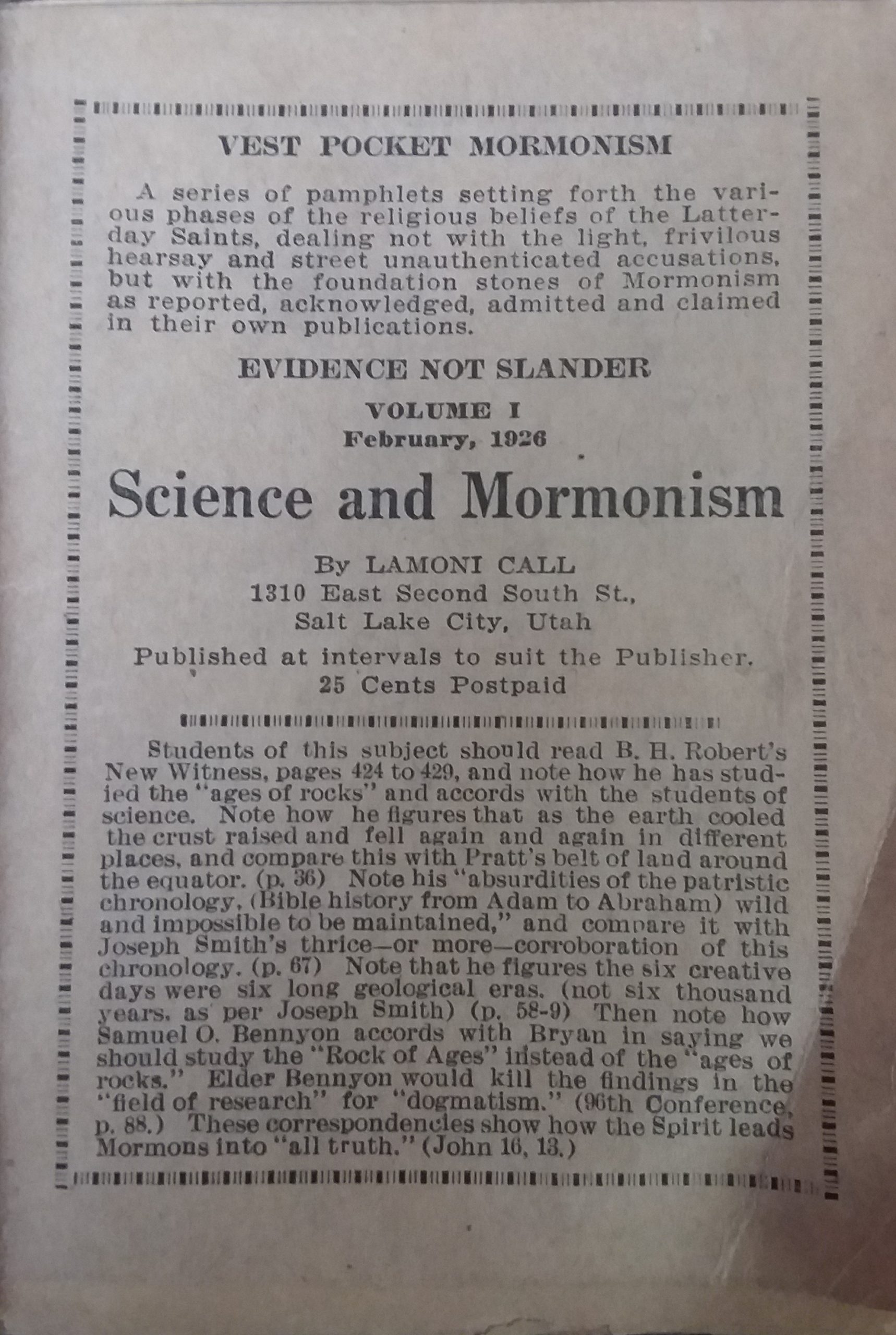 1926 – Science and Mormonism (Vol 1 Only) – Lamoni Call