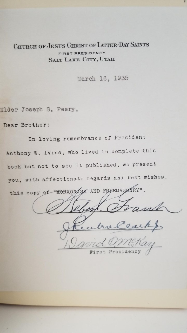mormon mormons mormonism lds mason masons masonry freemason freemasons freemasonry signed autograph autographed signature signatures