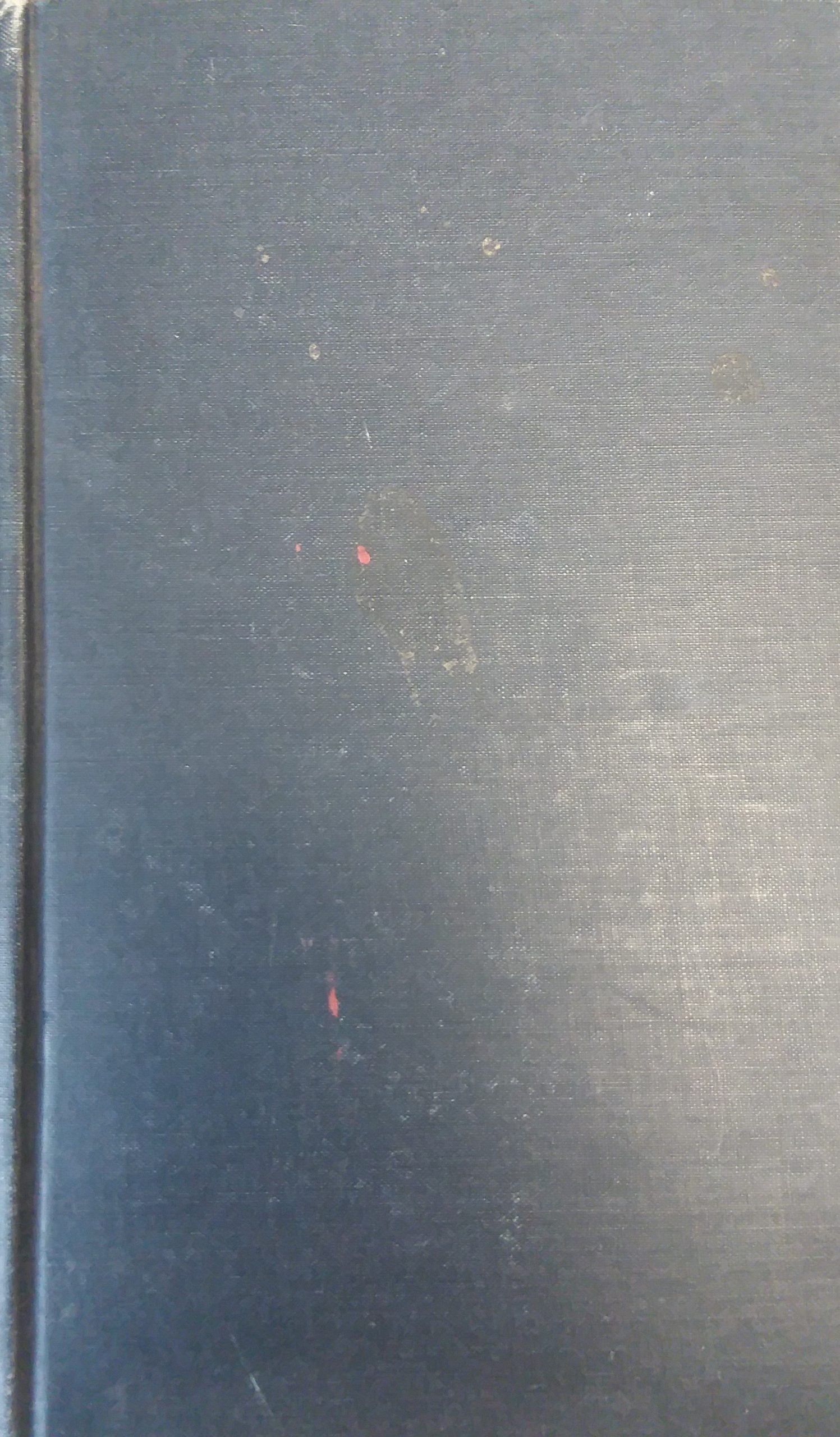Black hardcover with faded gold lettering on the spine. Some minor shelf wear on the covers and some water damage and small stains on the covers. Some pencil markings on the flyleaf, but otherwise the text throughout is clean, clear, and legible. There is a sticker on the inner front cover. In fair condition.