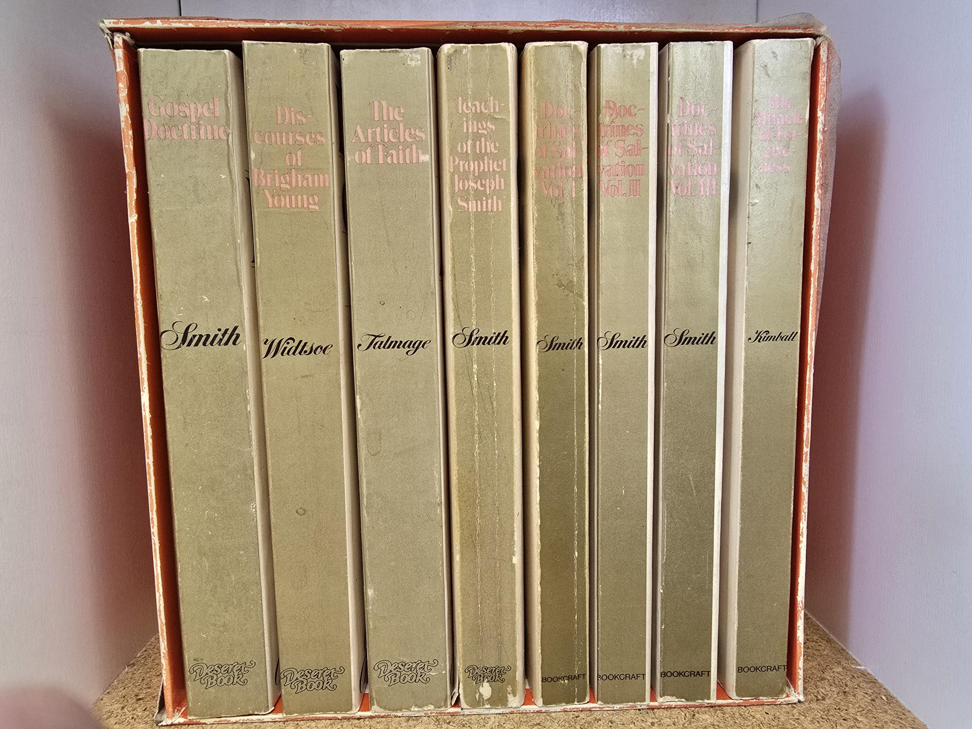 Gospel Doctrine, Discourses of Brigham Young, The Articles of Faith, Teachings of the Prophet Joseph Smith, Doctrines of Salvation (Vol. 1,2,3), The Miracle of Forgiveness — Authors: Spencer W. Kimball, John A. Widtsoe, Joseph Fielding Smith, James E. Talmage and Joseph Smith- Box Set