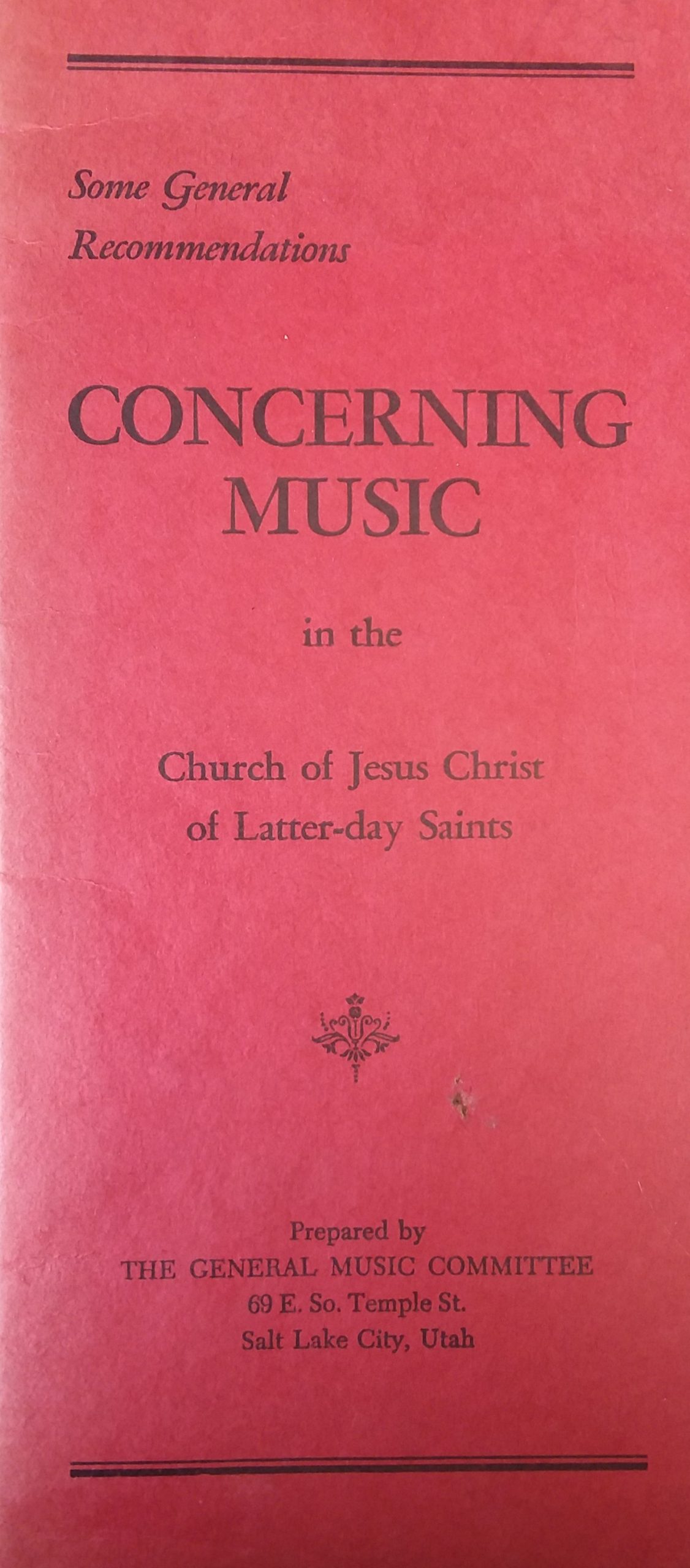 1954 – Concerning Music in the Church of Jesus Christ of Latter-Day Saints – General Music Committee – The Church of Jesus Christ of Latter-Day Saints