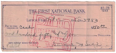 This canceled check is in pretty good condition; see our scan; and is signed by Mormon General Authority and Author, Sterling W. Sill.