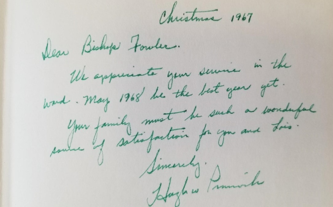 Inscribed and Signed by Elder Hugh W. Pinnock, who was a General Authority of the Mormon Church, serving in the Quorum of the Seventy.