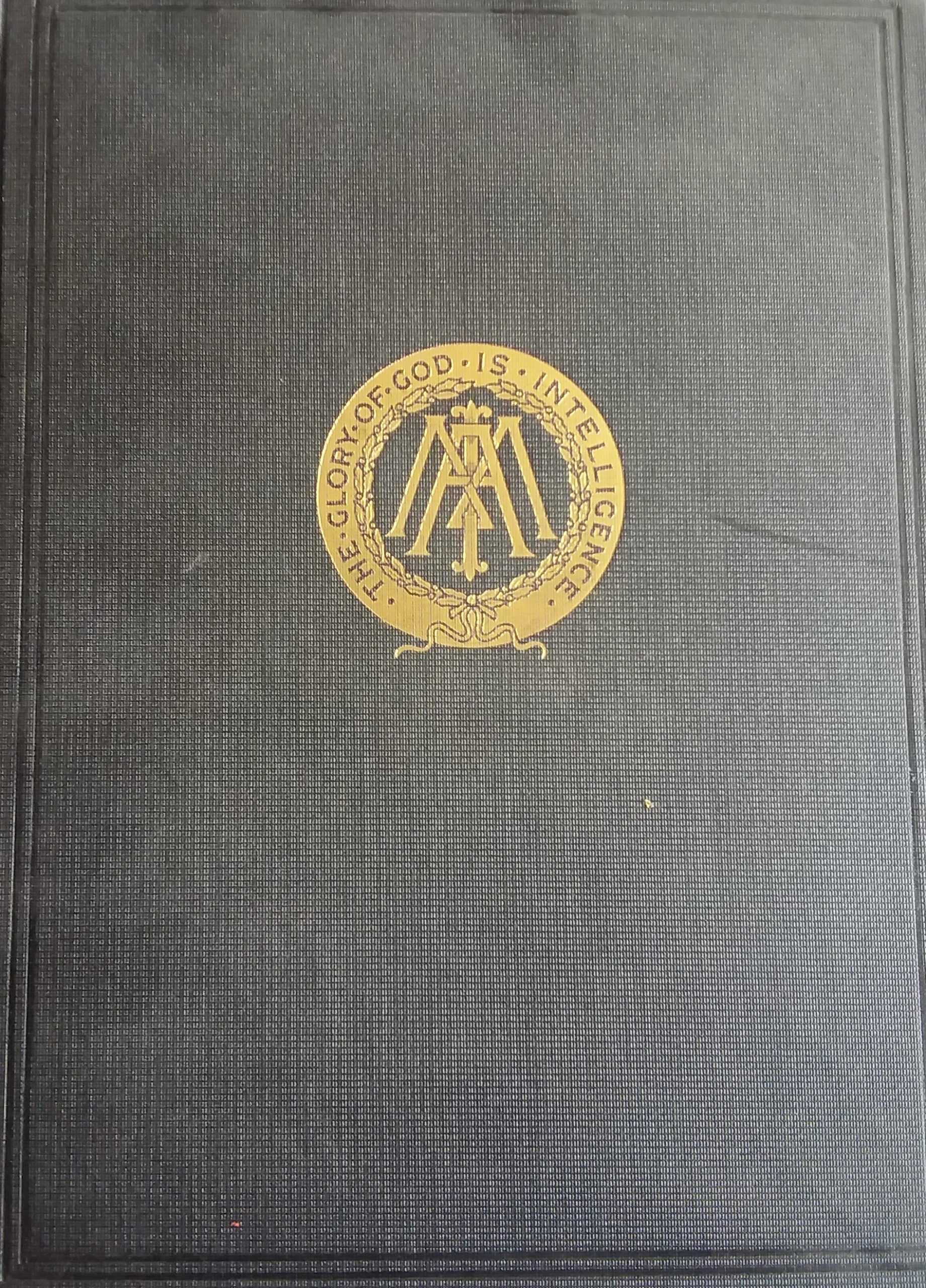 Tall, thick, black hardcover with gold lettering on the spine and the front cover. Some small smudges on both covers. Pencil markings on the flyleaf, but otherwise the text throughout is clean, clear, and legible. In fair condition.