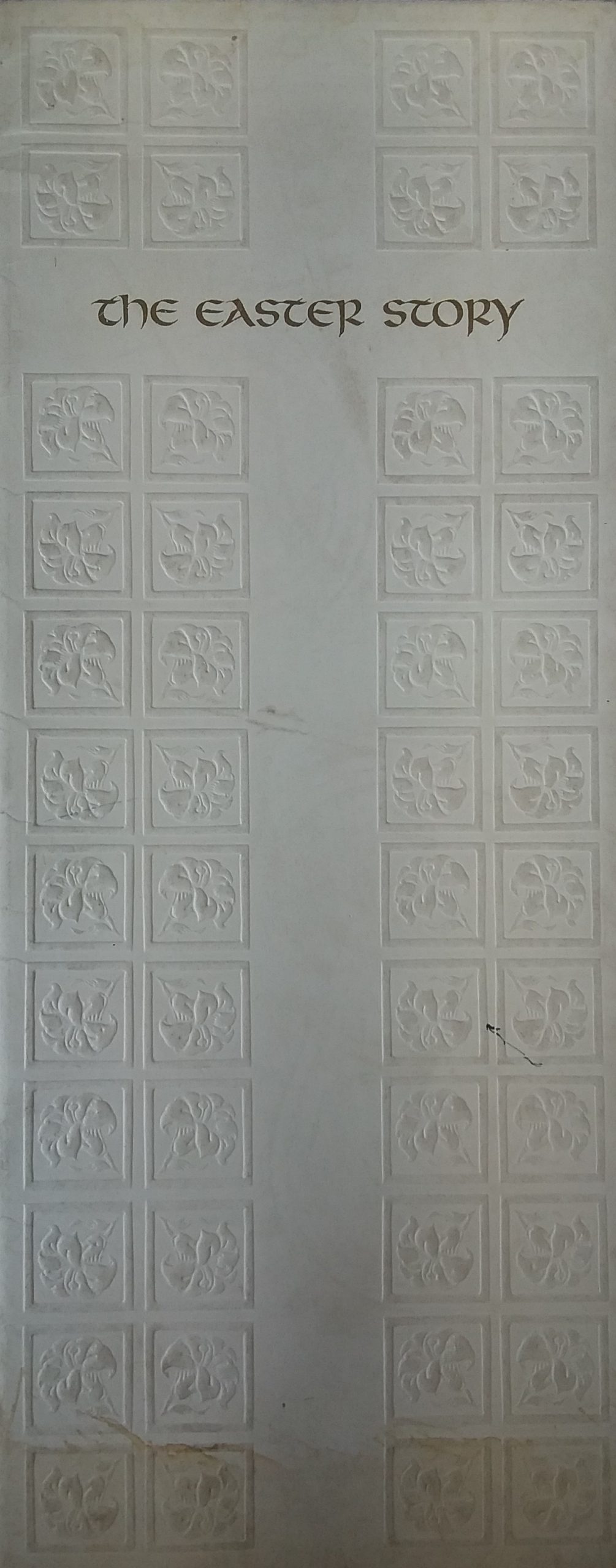 Tall white pamphlet with gold lettering. Some minor shelf wear with scuffs and scratches on both covers. Some discoloration due to age. Pen markings on the front cover. Water stains on the back cover. Some minor folds on the back cover. Pencil markings on the title page, but otherwise the text throughout is clean, clear, and legible. In fair condition.