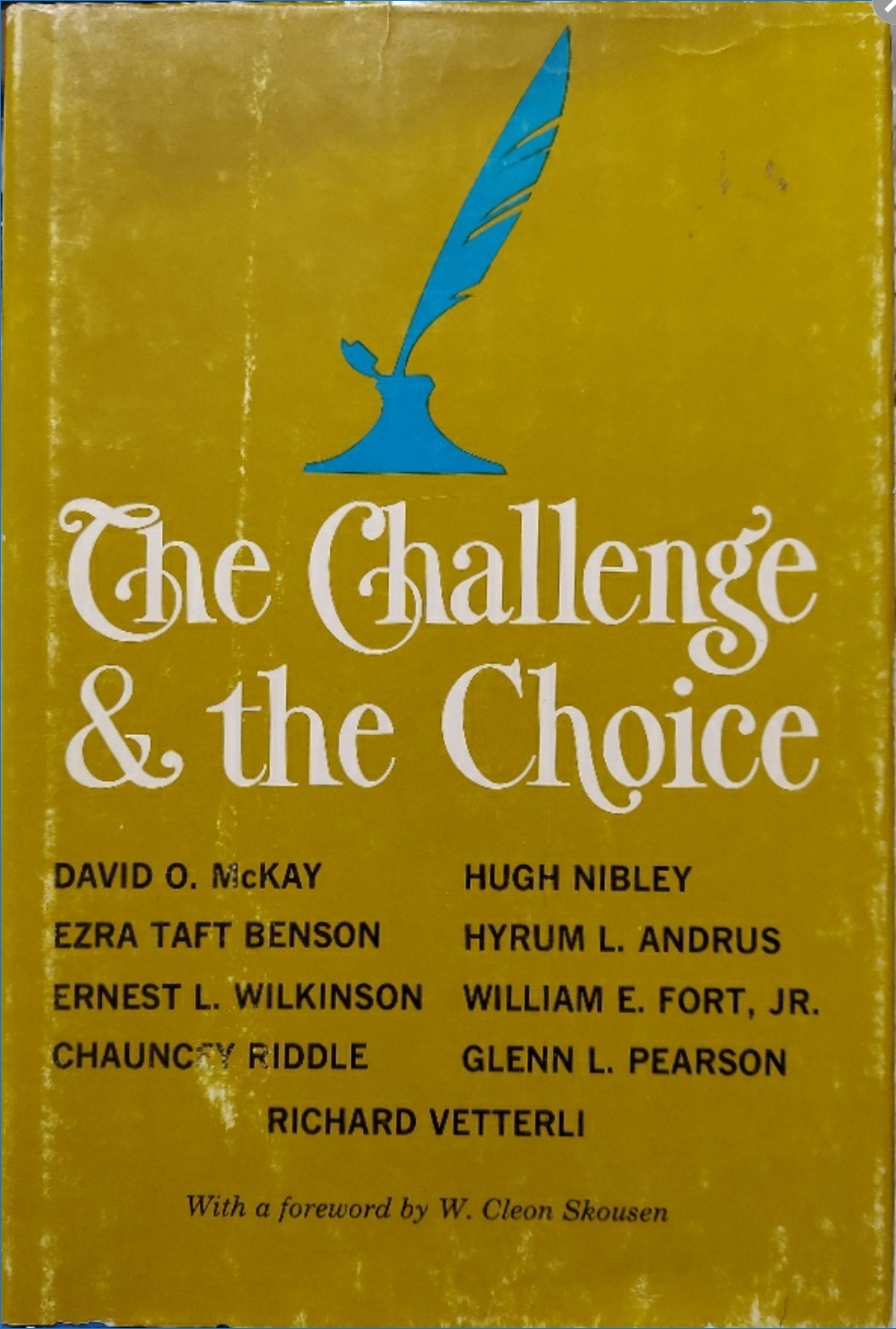 1969 ~ Richard Vetterli, compiler ~ The Challenge & the Choice — David O. McKay, Ezra Taft Benson, Hugh Nibley, Hyrum Andrus, Ernest L. Wilkinson, Chauncy Riddle, Glenn L. Pearson, William E. Fort Jr.