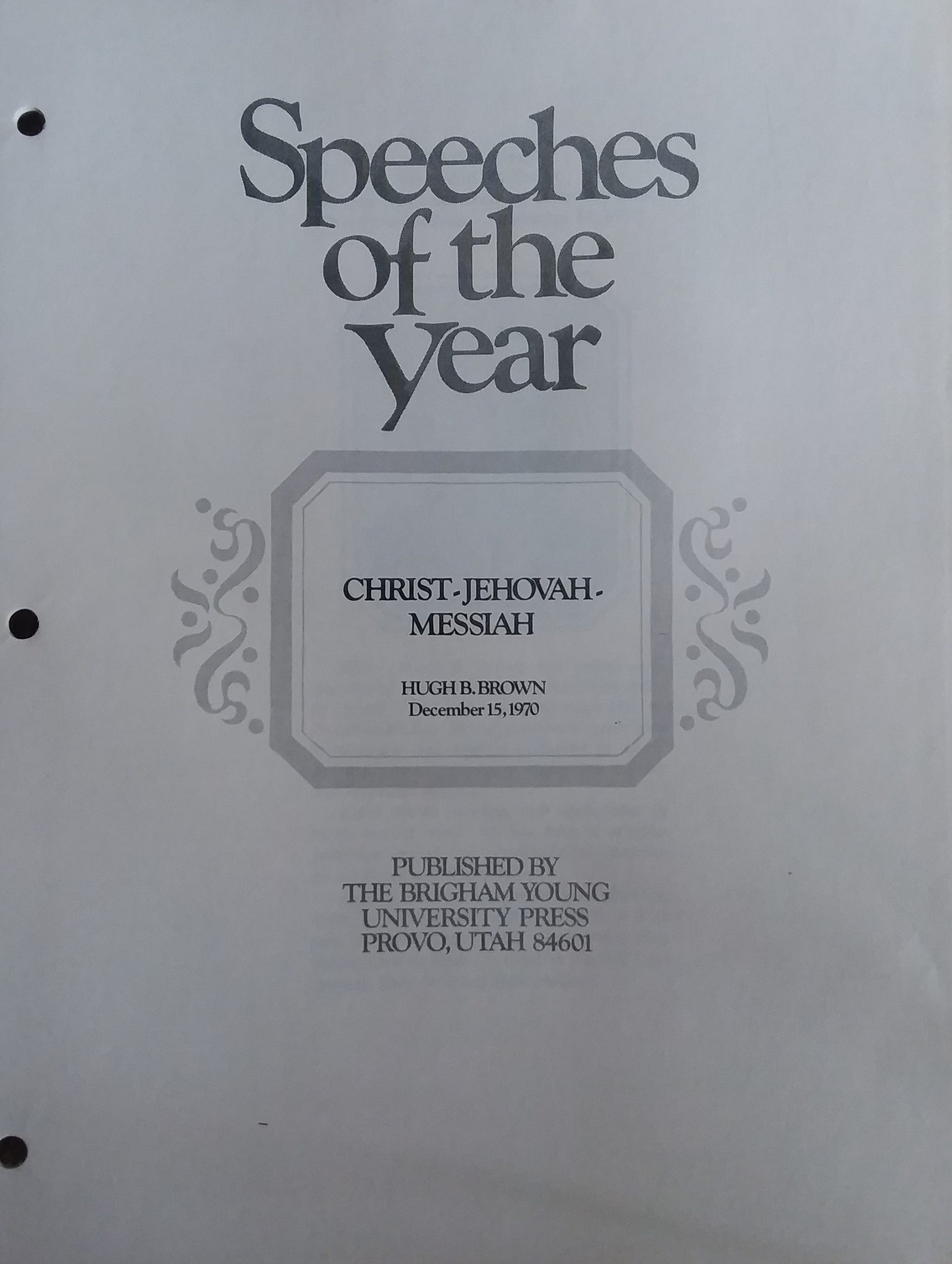 1970 – Speeches of the Year: Christ-Jehovah-Messiah – Hugh B. Brown