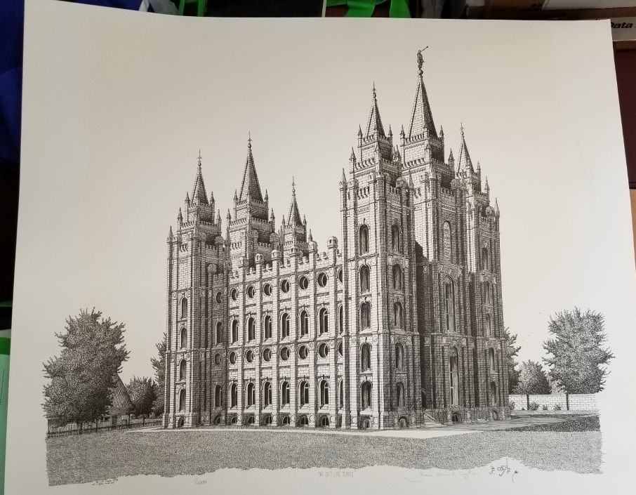 key search words: Mormon Mormons Mormonism LDS Church of Jesus Christ of Latter-day Saints Saint J. E. Coyle Je Coyle Art Print Salt Lake City Utah Temple