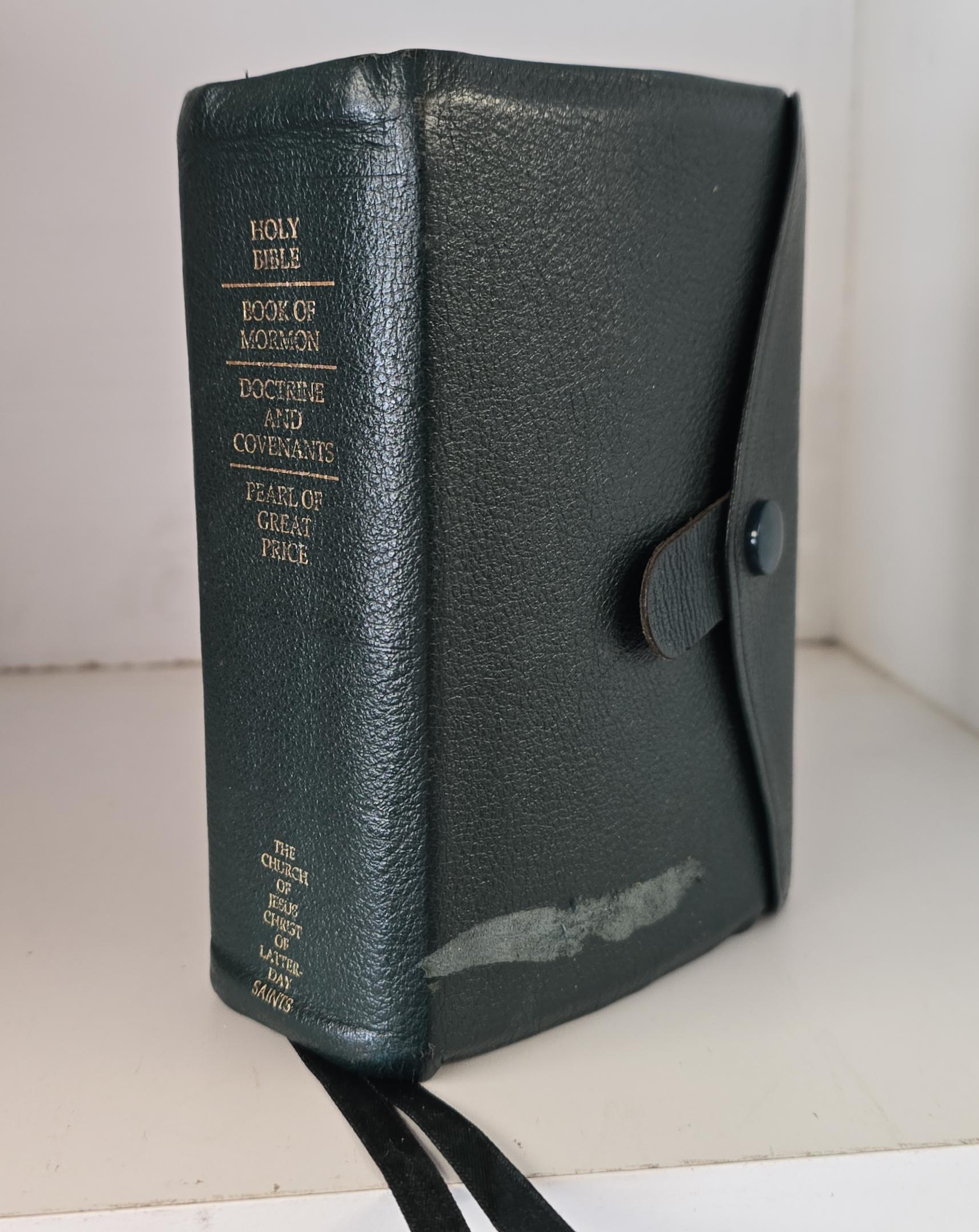 Unfortunately this copy has a scraped front cover where someone removed the name that was engraved on it.