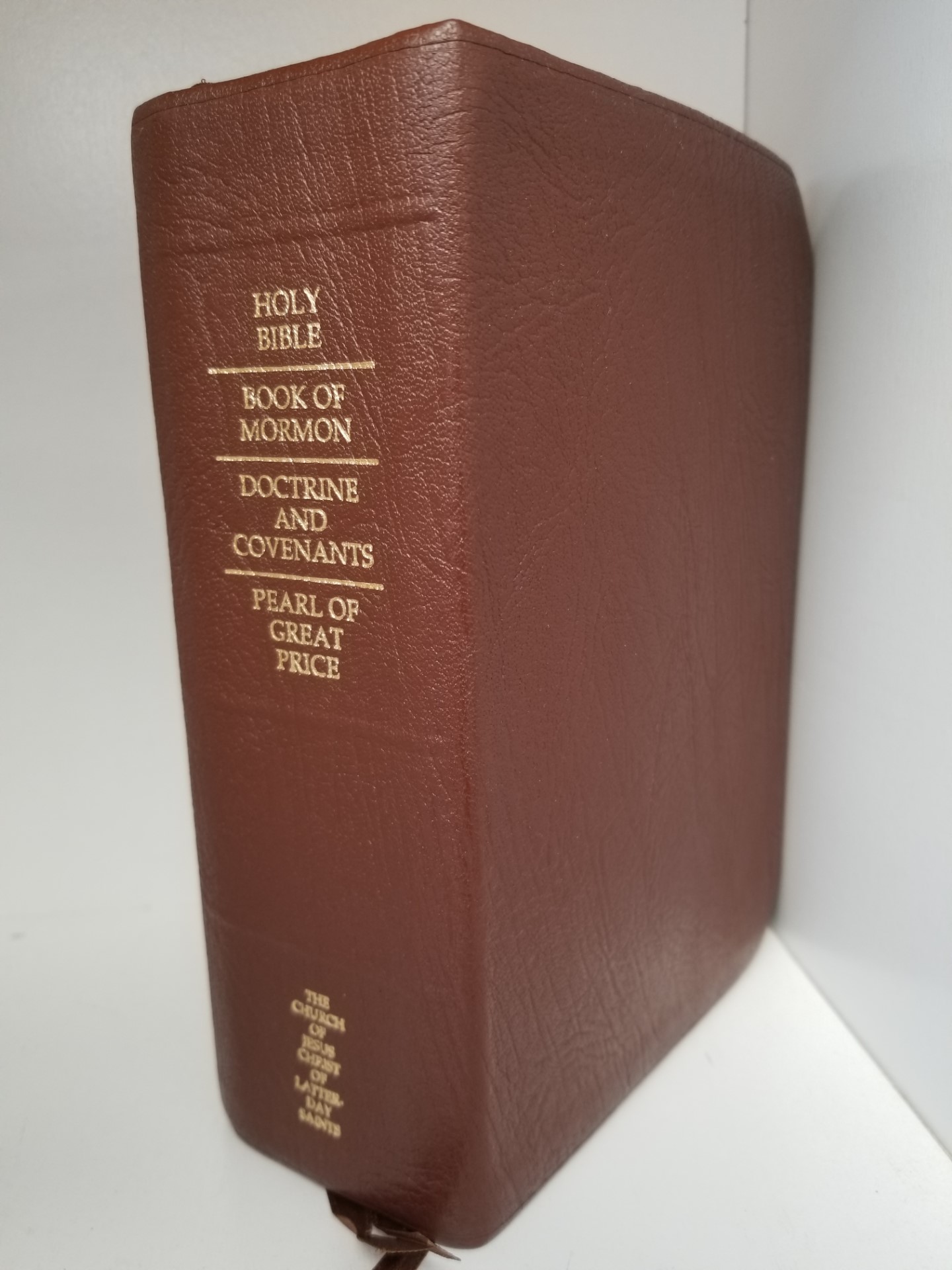 mormon mormons mormonism lds quad quads holy bible book of mormon doctrine and covenants D&C pearl of great price leather binding leather bindings leatherbound leatherbounds