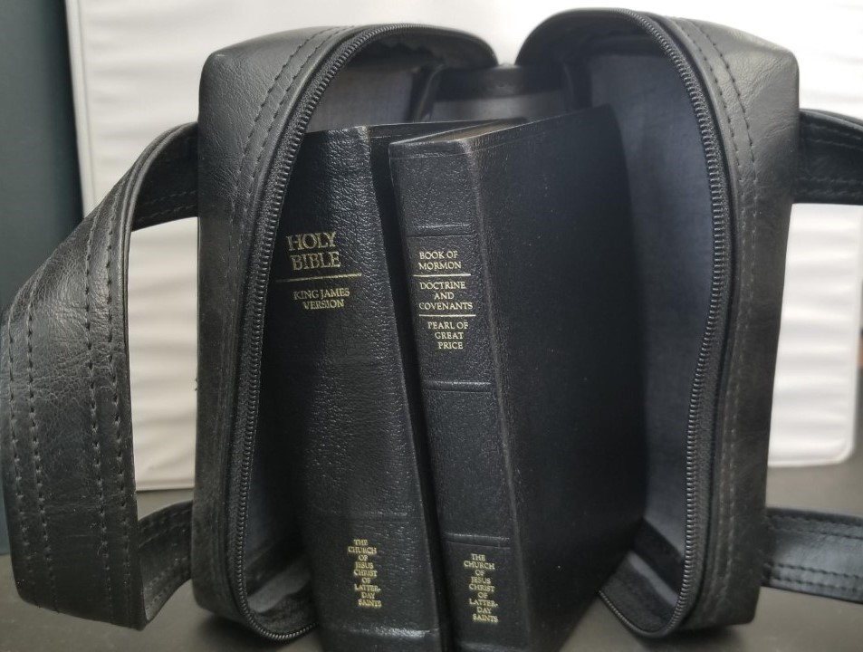 2007 — Mini Size Scriptures in Carrying Case — Holy Bible & Triple Combination — Black Leather — Indexed Page Edges — Gold-Leafed Page Edges — Nice!