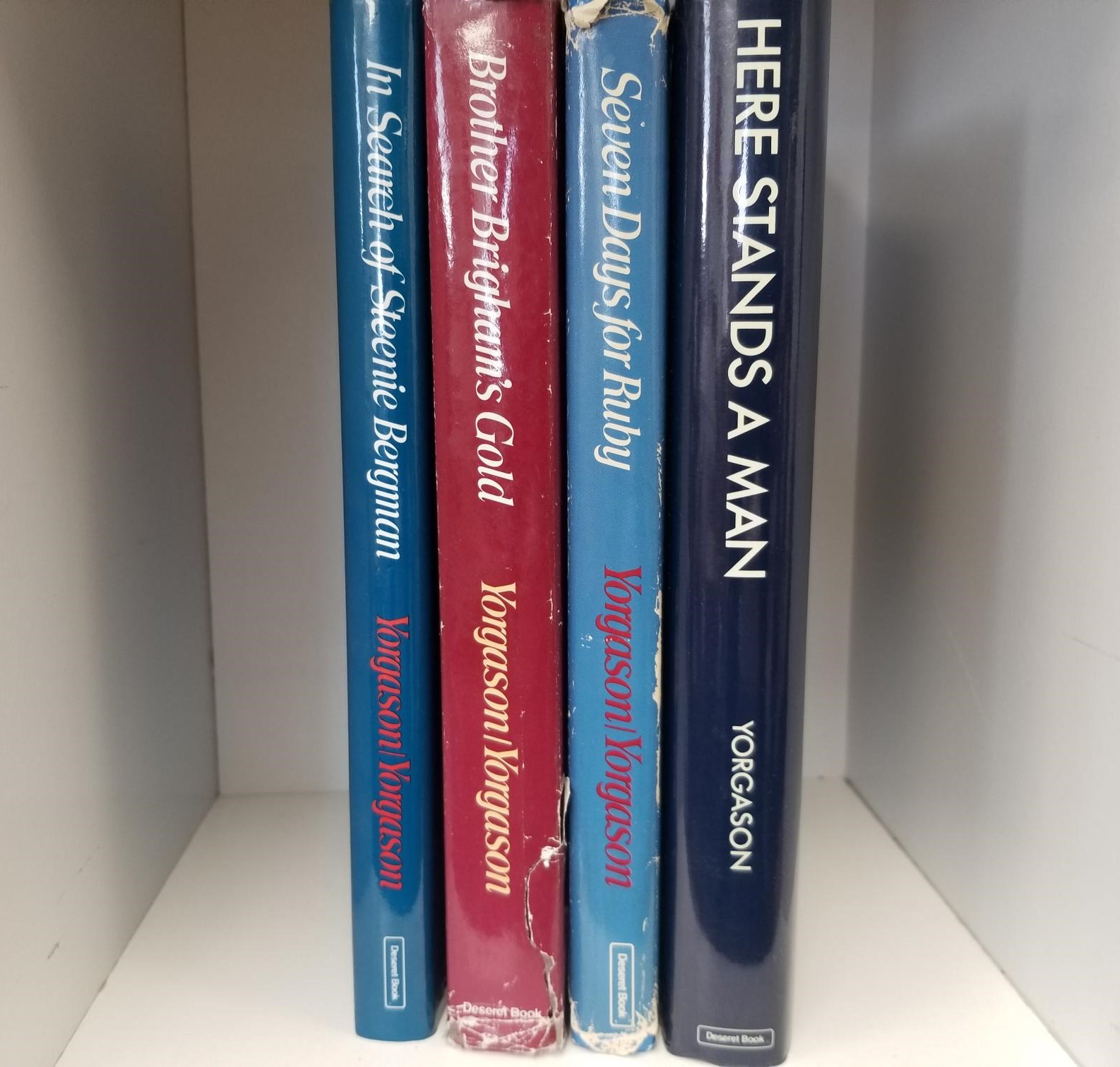 4 Book Lot by Blaine & Brenton Yorgason — 1) Here Stands A Man; 2) Seven Days for Ruby; 3) Brother Brigham’s Gold; 4) In Search of Steenie Bergman