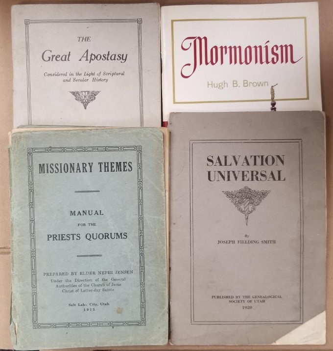 4 LDS Softbound Booklets — Missionary Themes (1925) / Great Apostasy by Talmage (1910) / Salvation Universal (1920) by Joseph Fielding Smith / Mormonism by Hugh B. Brown