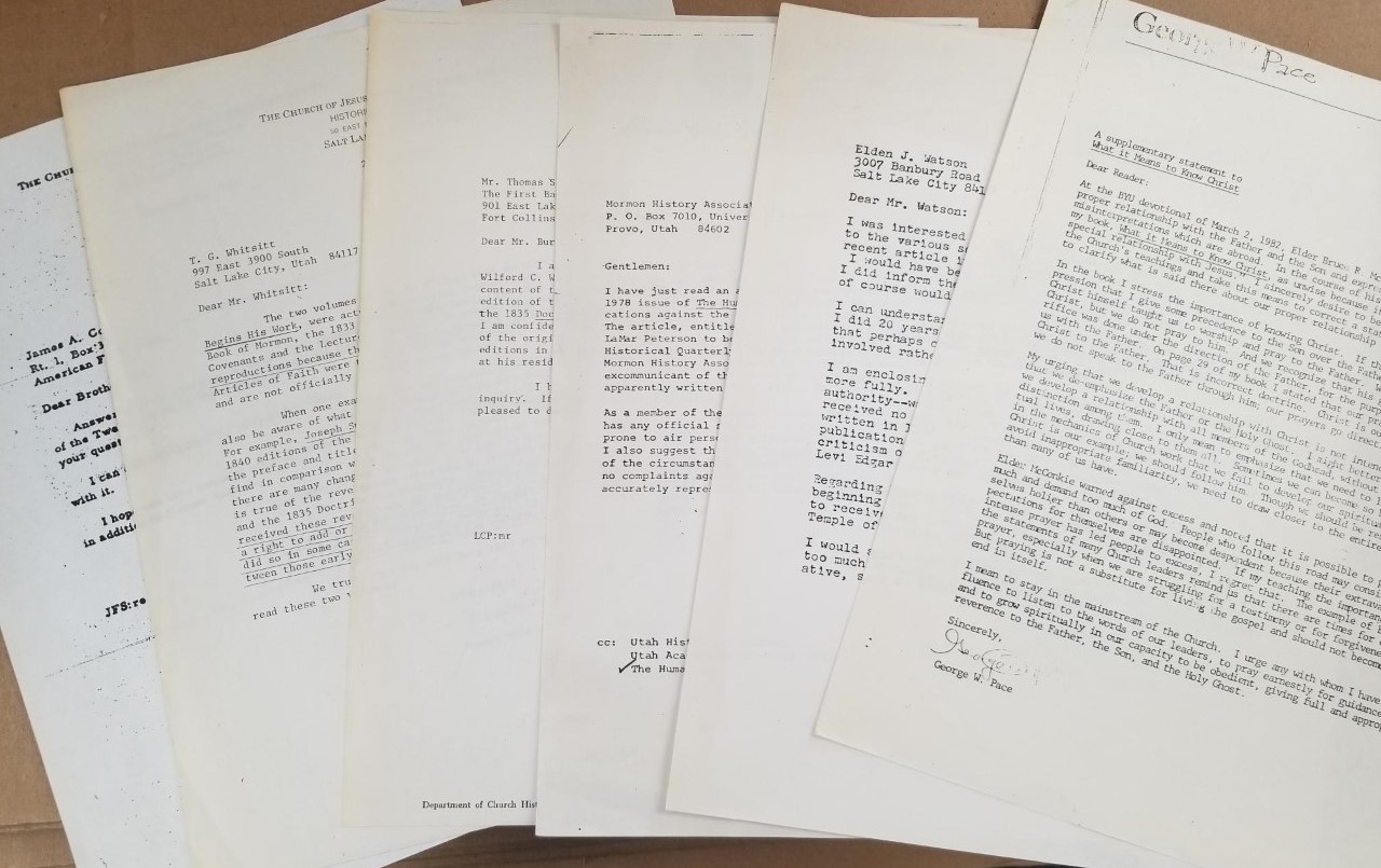 6 Unique LDS Letters — Photo Copies — George W. Pace, Elden J. Watson, Larry C. Porter, Joseph Anderson, Joseph Fielding Smith