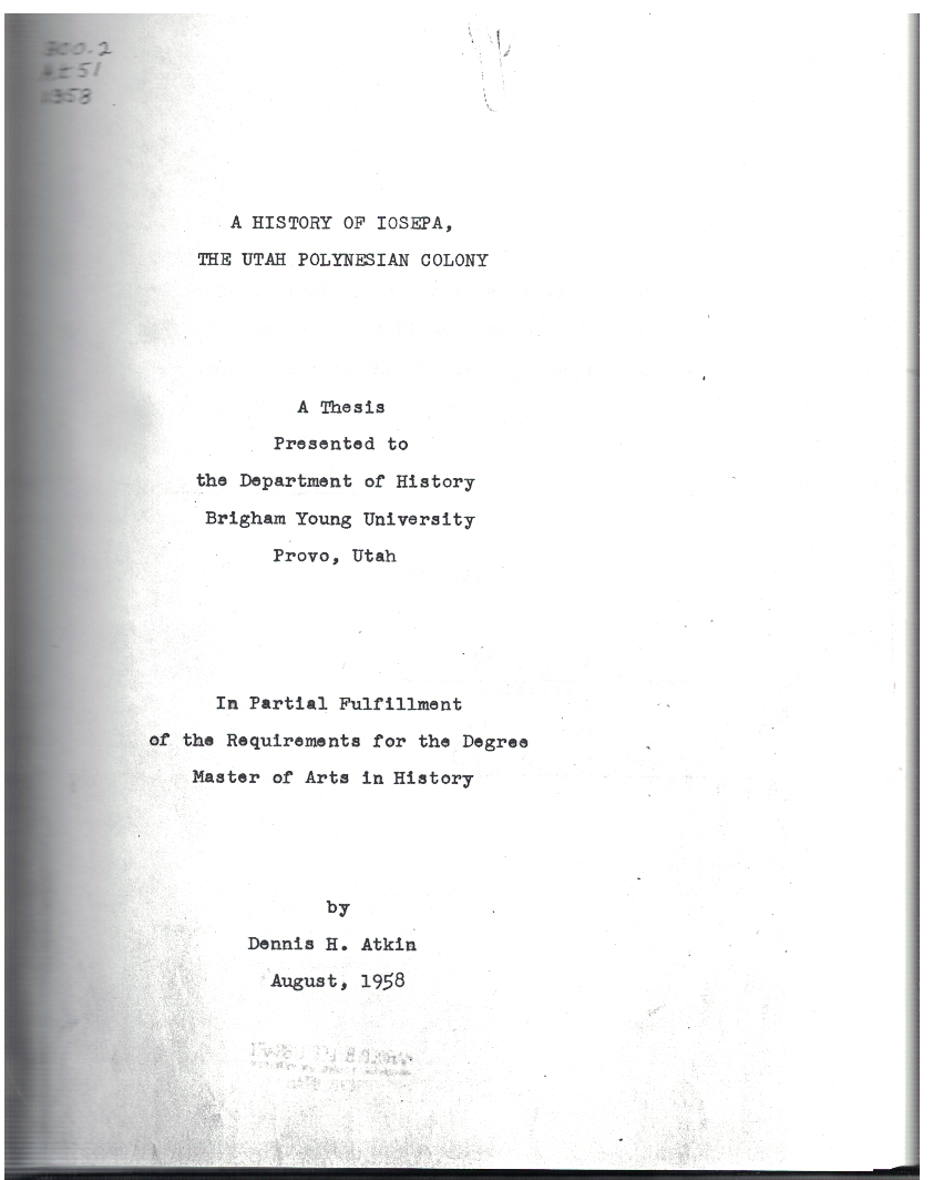 “It was not until about a year ago that I was first made aware of the fact that there had been a Polynesian Colony in Utah. Very little has been written about this unique settlement and because of the lack of sufficient sources, many mistakes have arisen.”