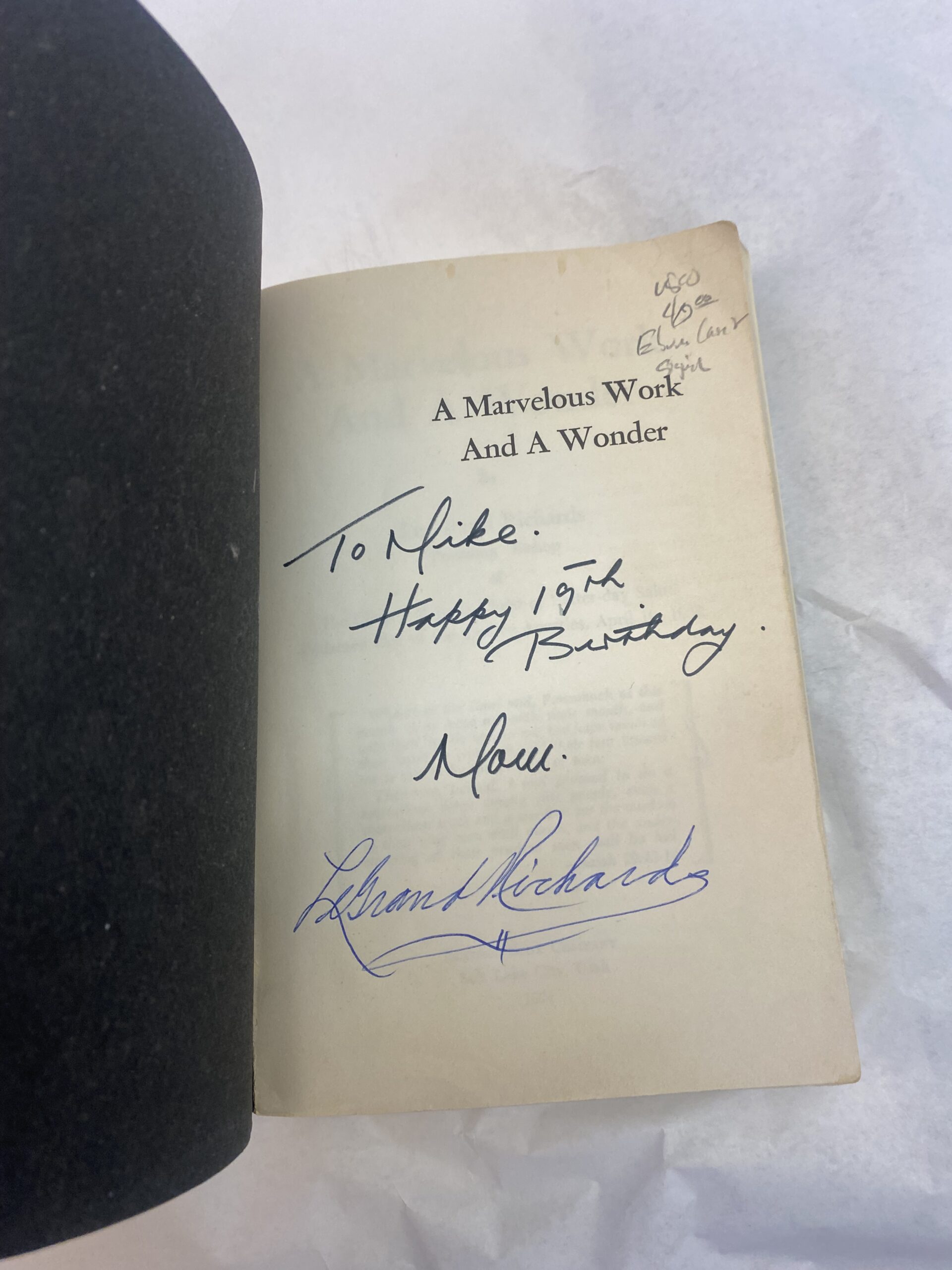 Signed copy of A Marvelous Work and a Wonder by LeGrand Richards. Paperback, 1971.
