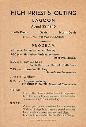 Broadside: High Priest’s Outing, Lagoon, August 22, 1946 — Single-Sided Sheet