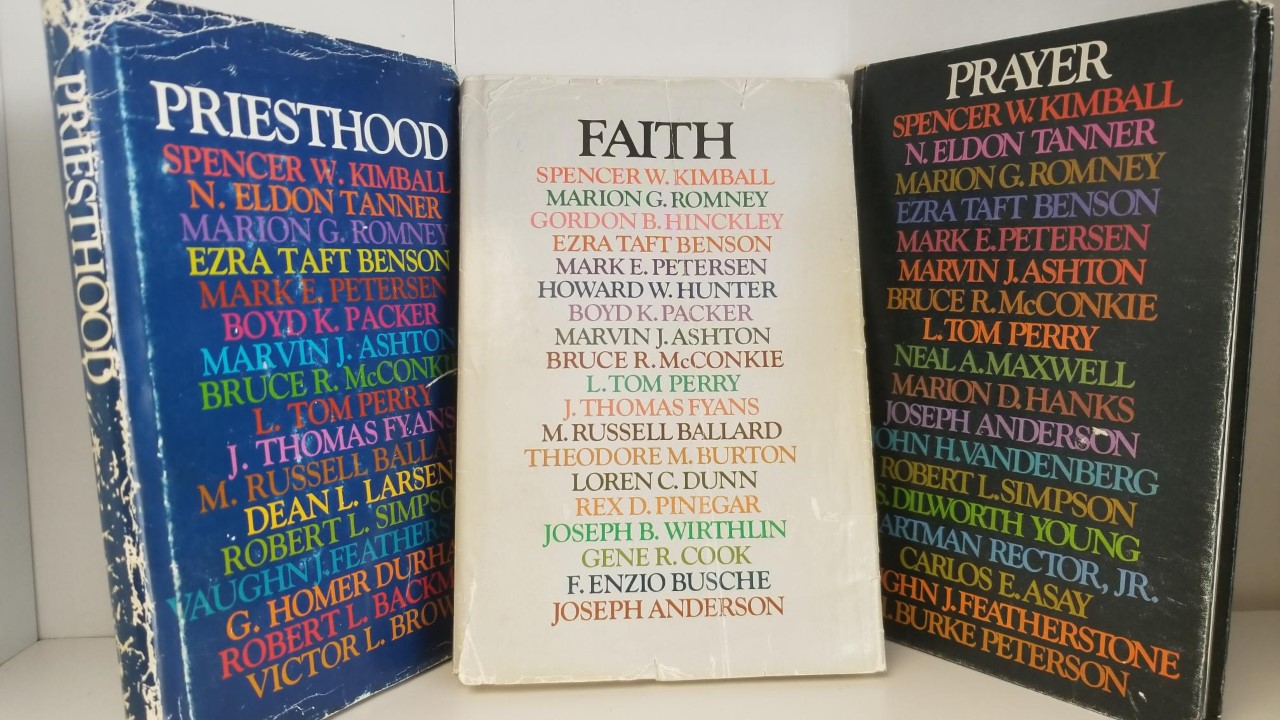 Bundle of 3 LDS Books — Faith / Priesthood / Prayer — Spencer W. Kimball, Ezra Taft Benson, Bruce R. McConkie, Neal A. Maxwell, Marion D. Hanks, Mark E. Petersen, N. Eldon Tanner, etc….