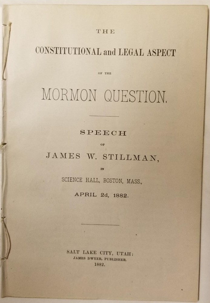 The Constitutional and Legal Aspects of the Mormon Question. Speech of James W. Stillman, in Science Hall, Boston, Mass., April 2d, 1882.