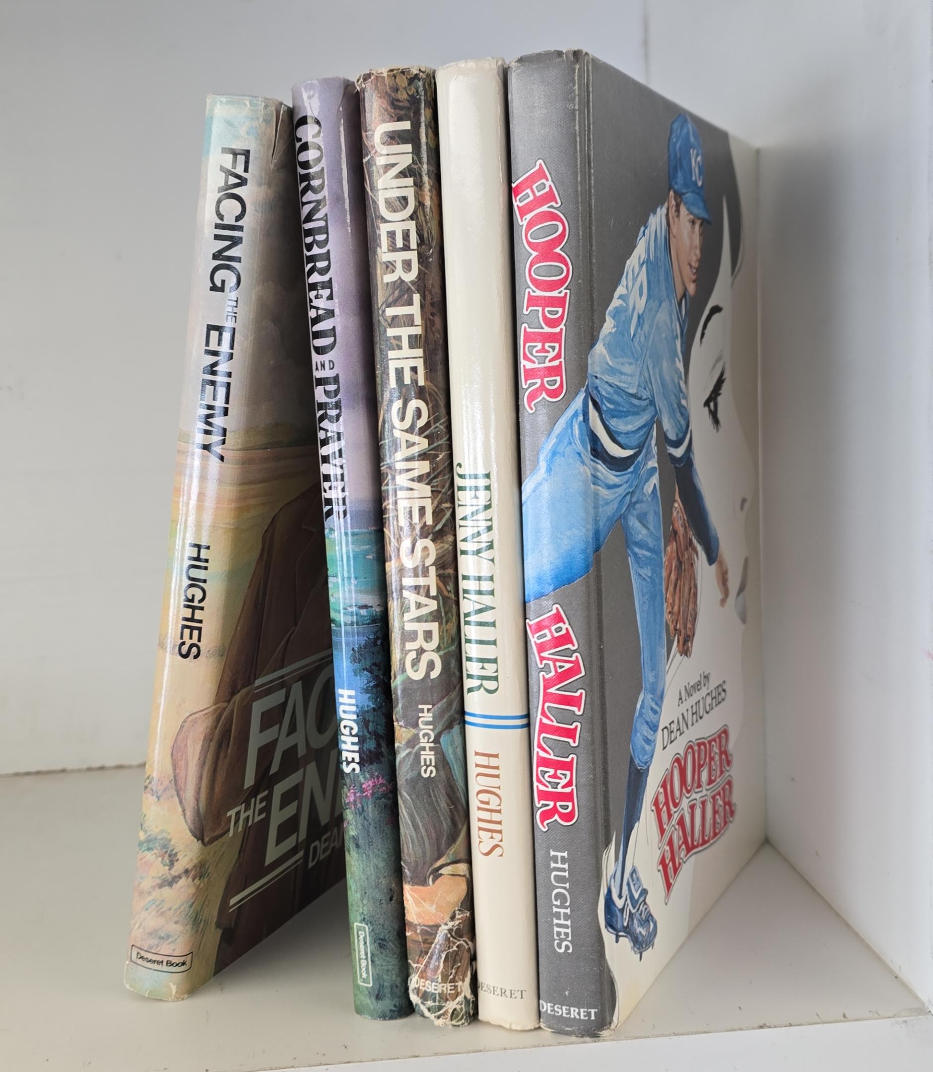 Dean Hughes — 5 LDS Novels — Hooper Haller, Jenny Haller, Under the Same Stars, Facing the Enemy, Cornbread and Prayer — Hardbounds